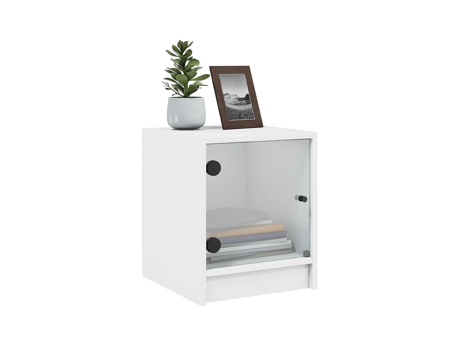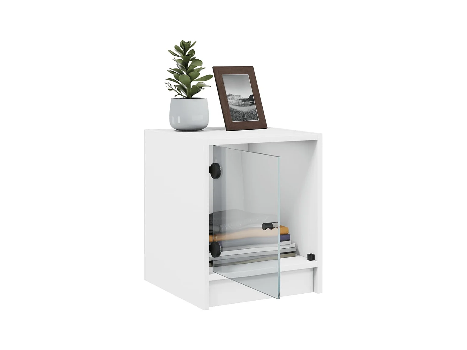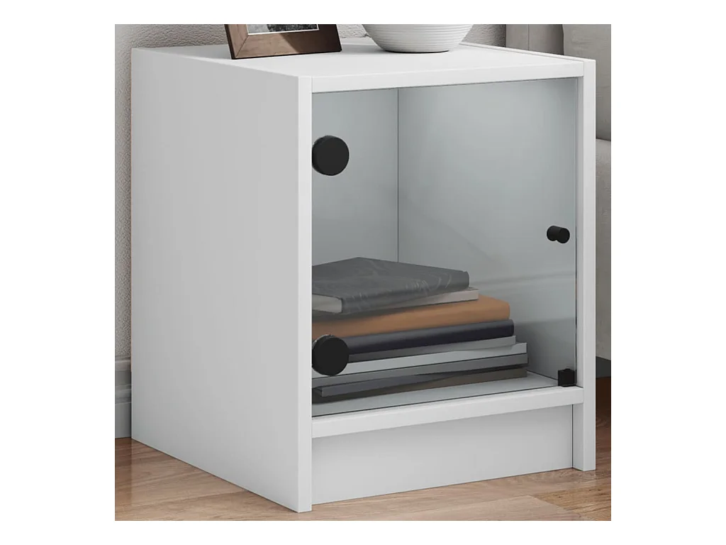 Table de chevet avec porte en verre blanc 35x37x35 cm