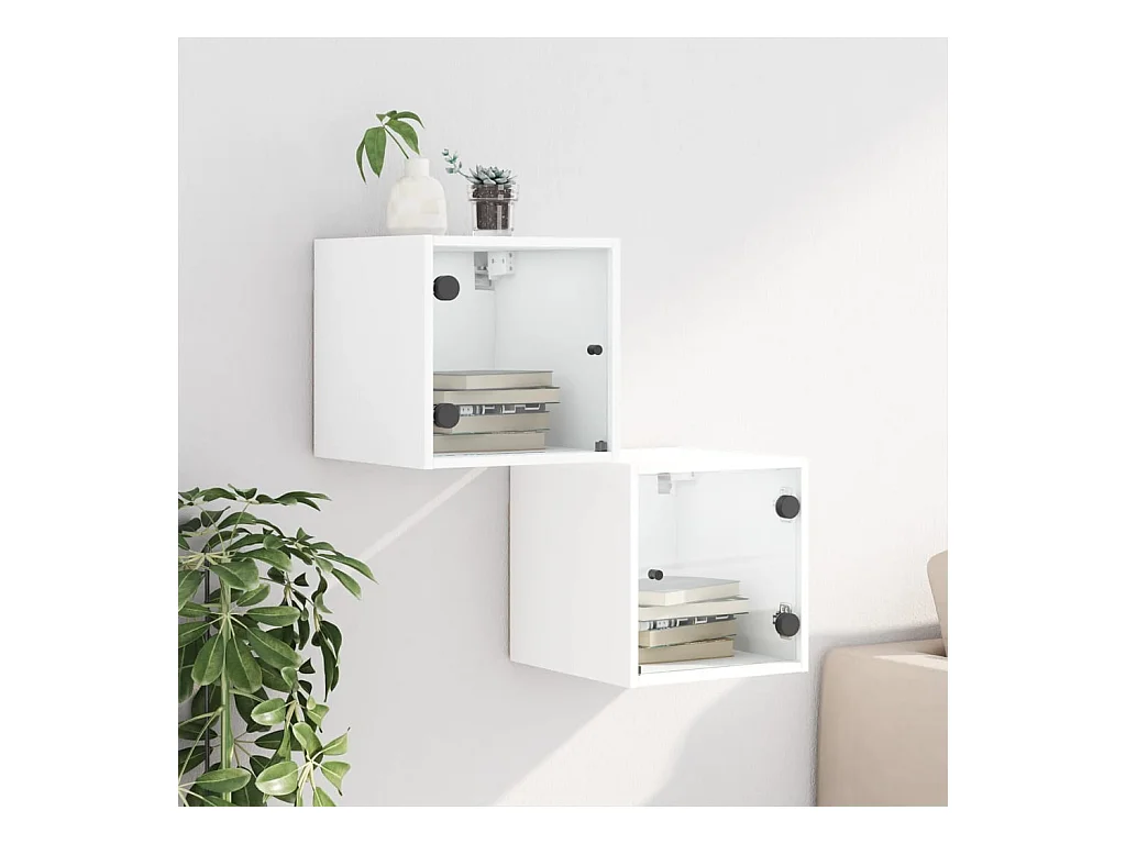 Tables de chevet avec portes en verre 2 pièces blanc 35x37x35 cm
