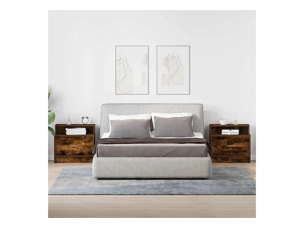 Cabinet de chevet avec tiroir 2 pcs Chêne fumé 41 x 31 x 51 cm
