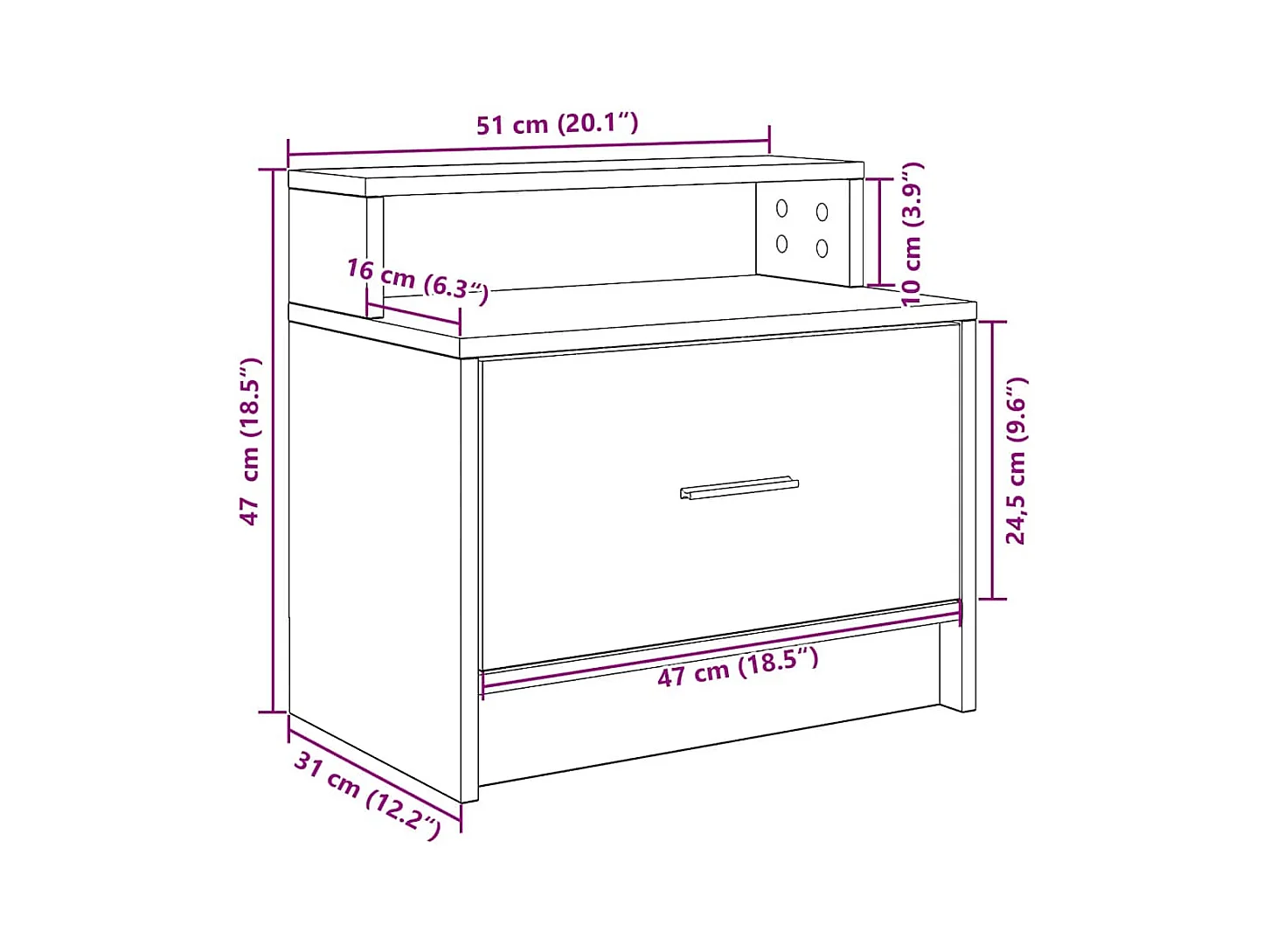 Table de chevet avec tiroir chêne fumé 51x31x47 cm