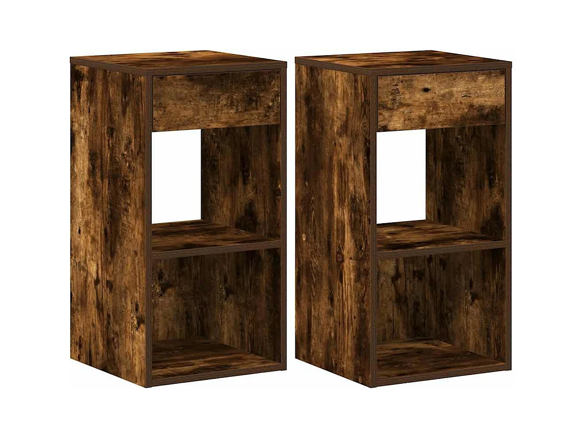 Tables de chevet avec tiroir 2 pièces chêne fumé 35x34x66,5 cm