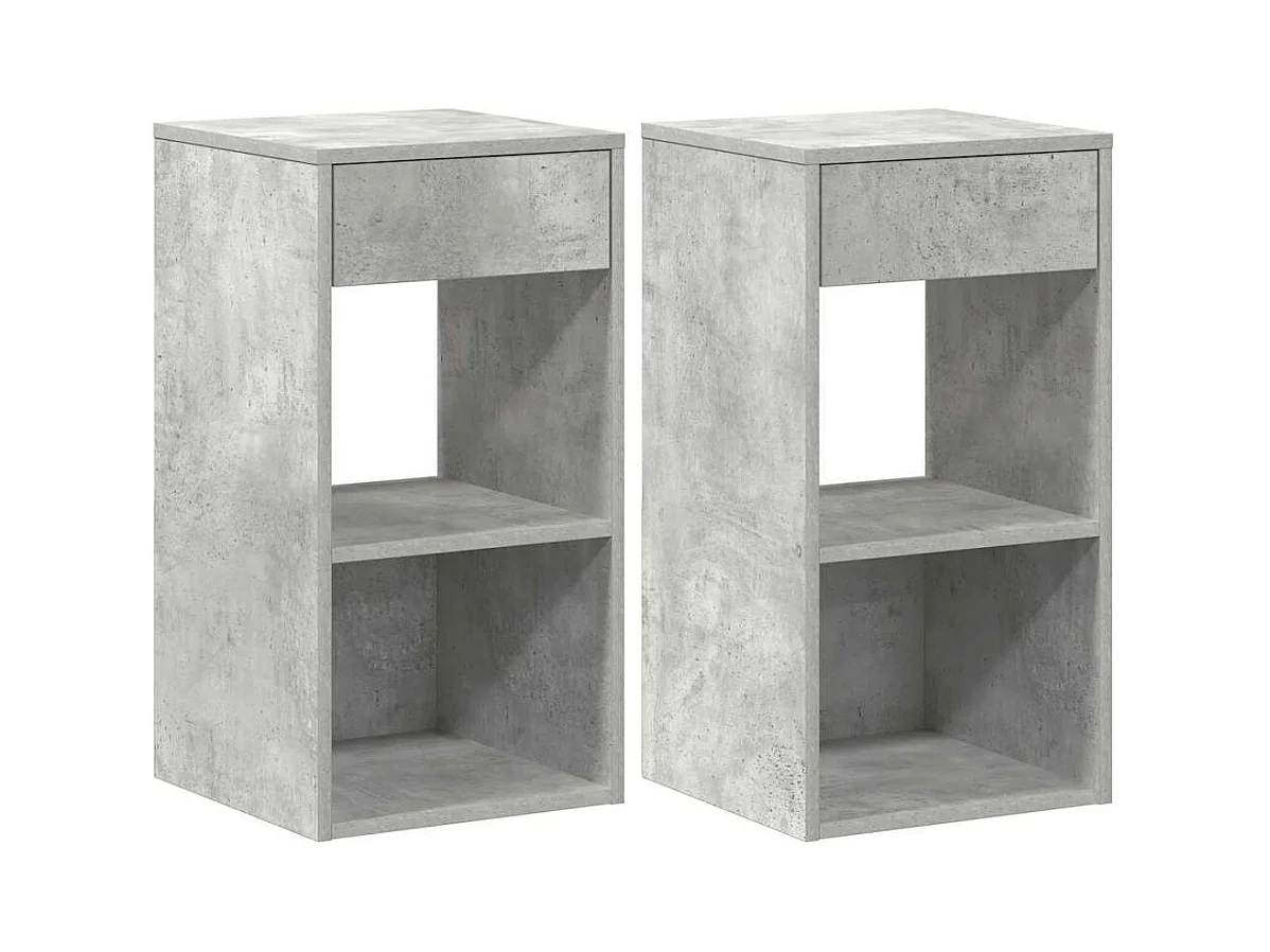 Tables de chevet avec tiroir 2 pièces gris béton 35x34x66,5 cm