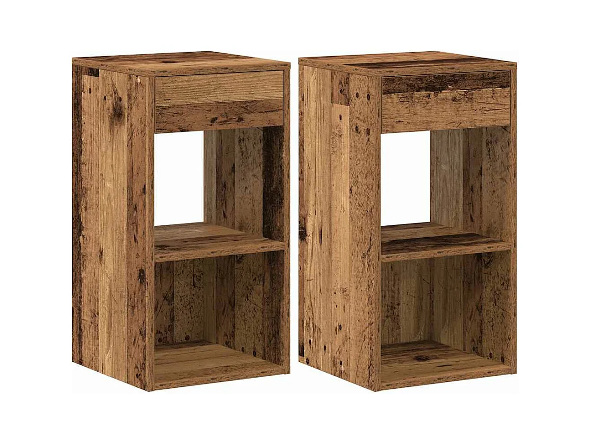 Tables de chevet avec tiroir 2 pièces vieux bois 35x34x66,5 cm