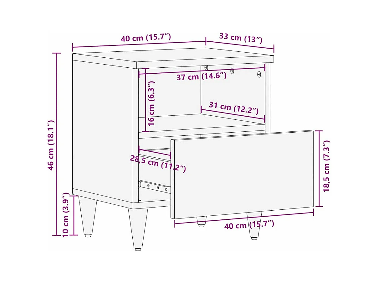 Table de chevet 40x33x46 cm en bois solide de mangue