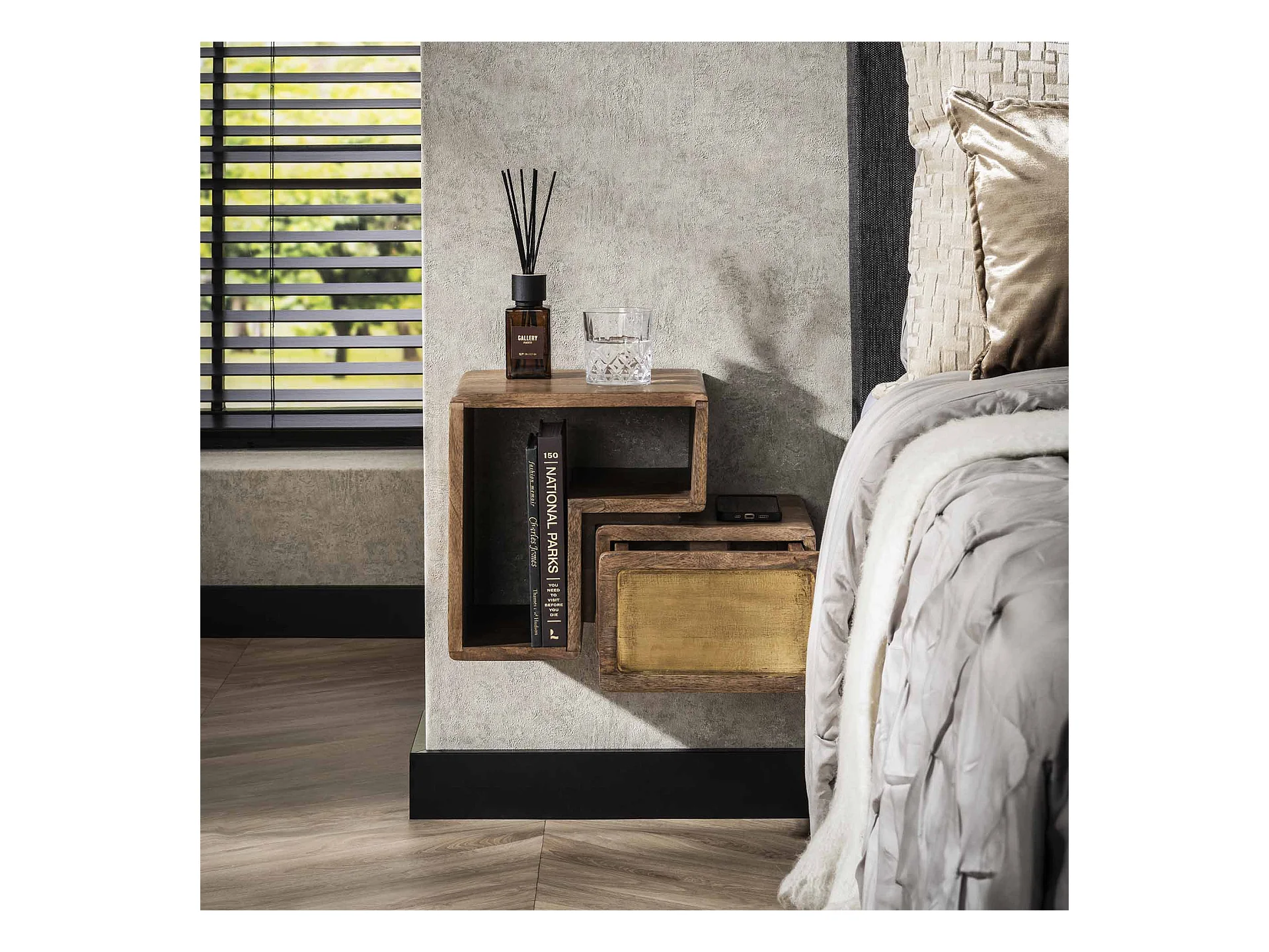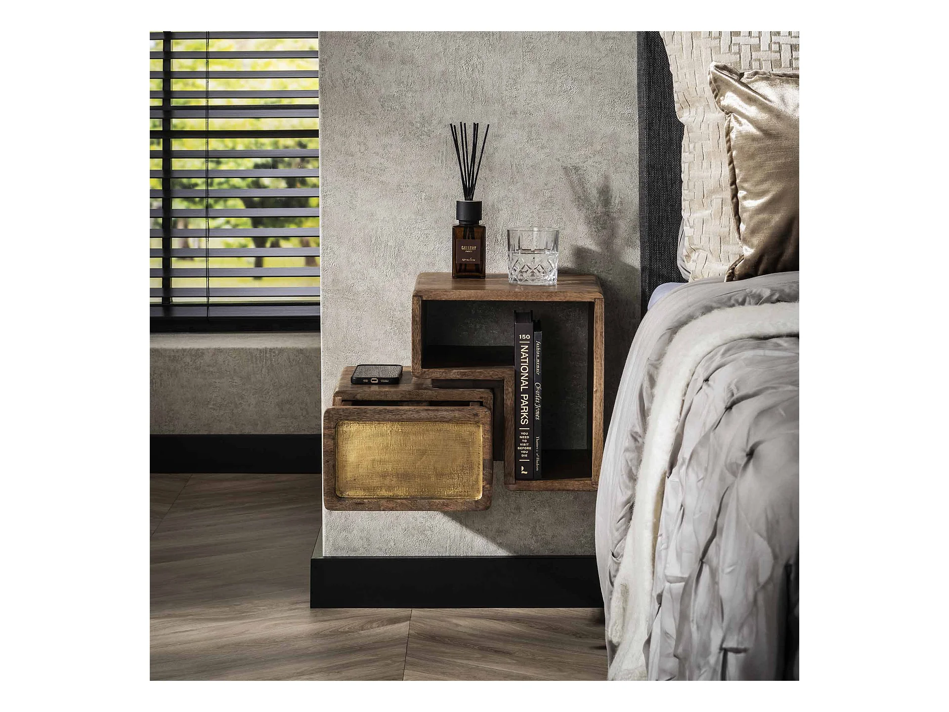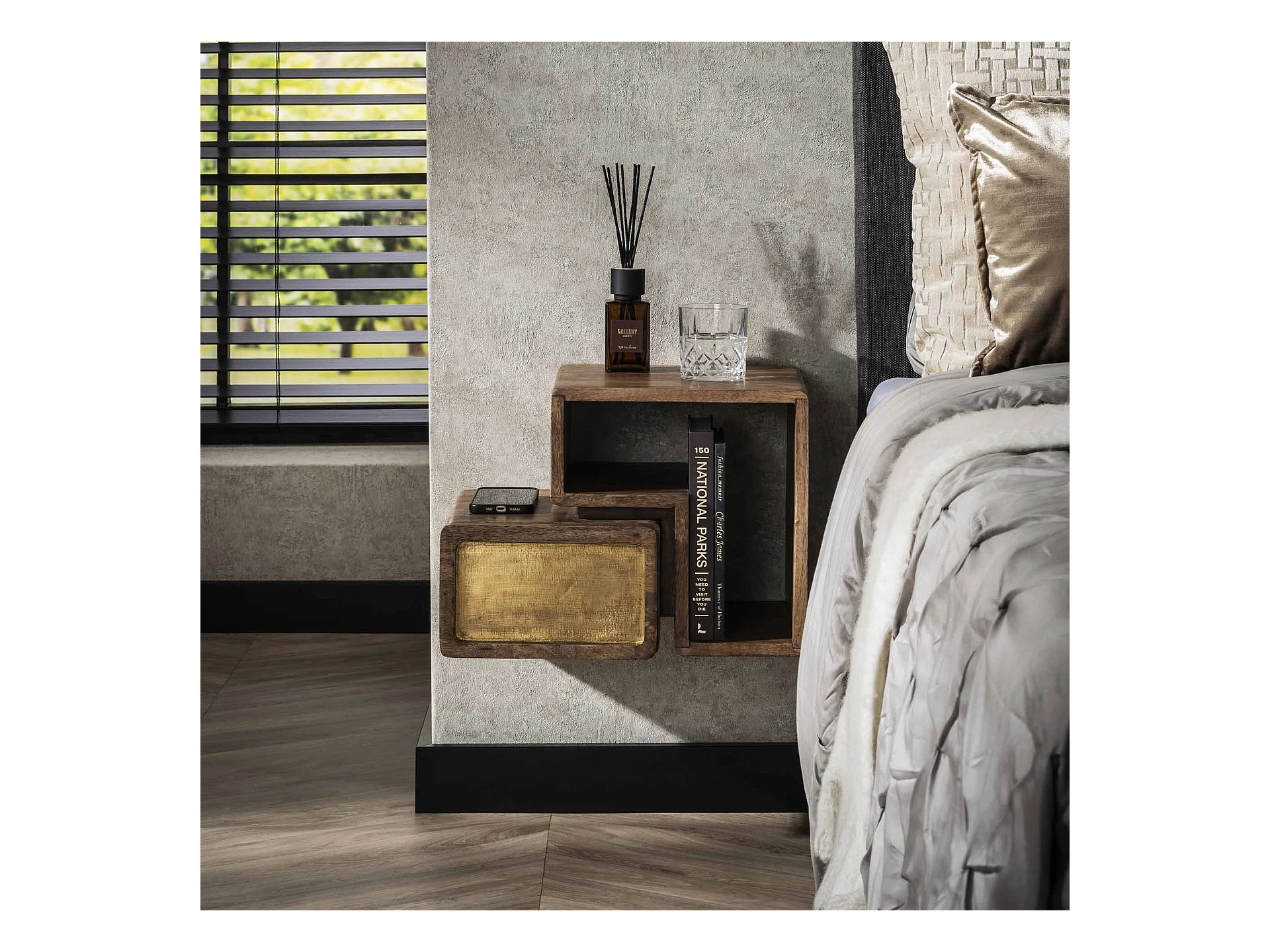 Table de chevet en laiton - Manguier massif noir - Largeur 40 cm