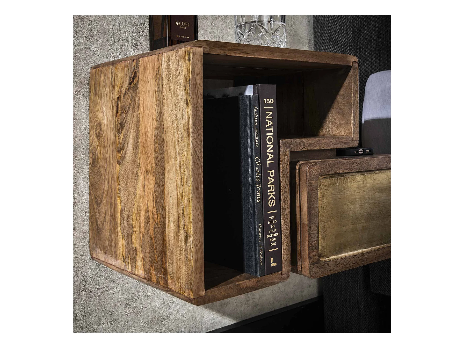 Table de chevet XS Laiton - Manguier massif noir - Largeur 30 cm