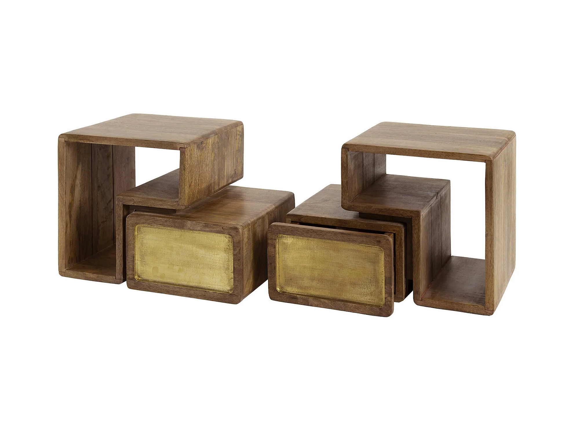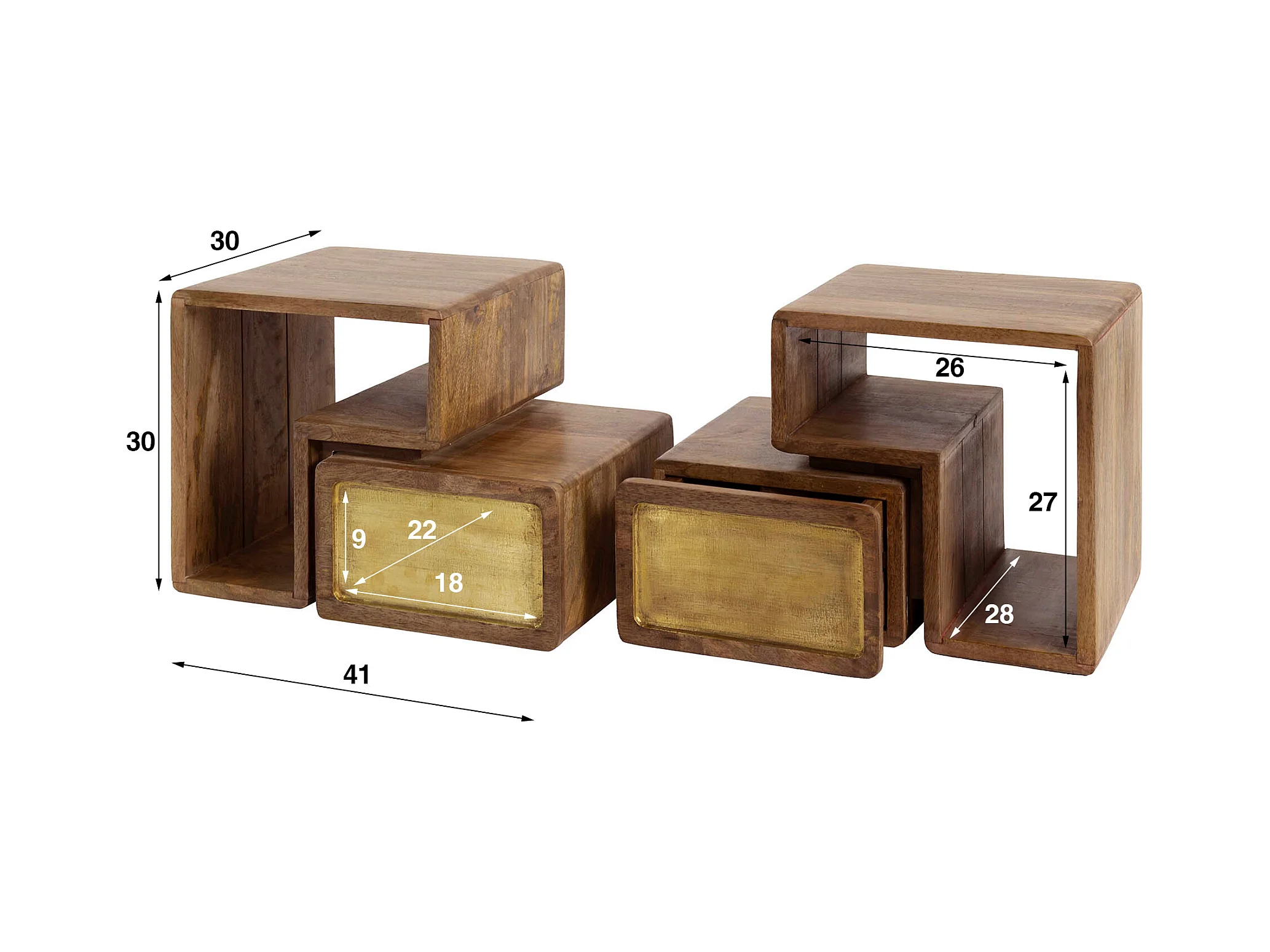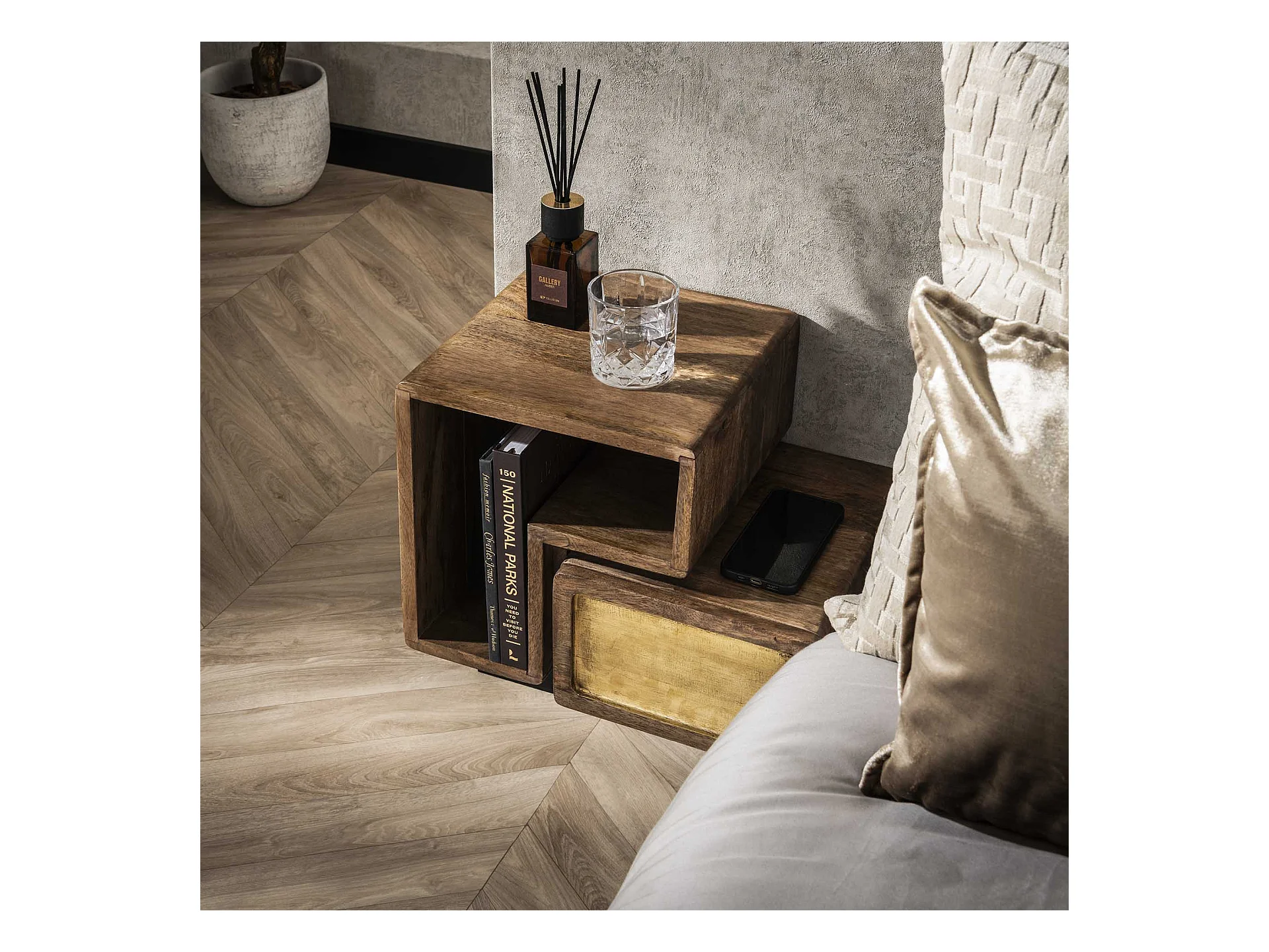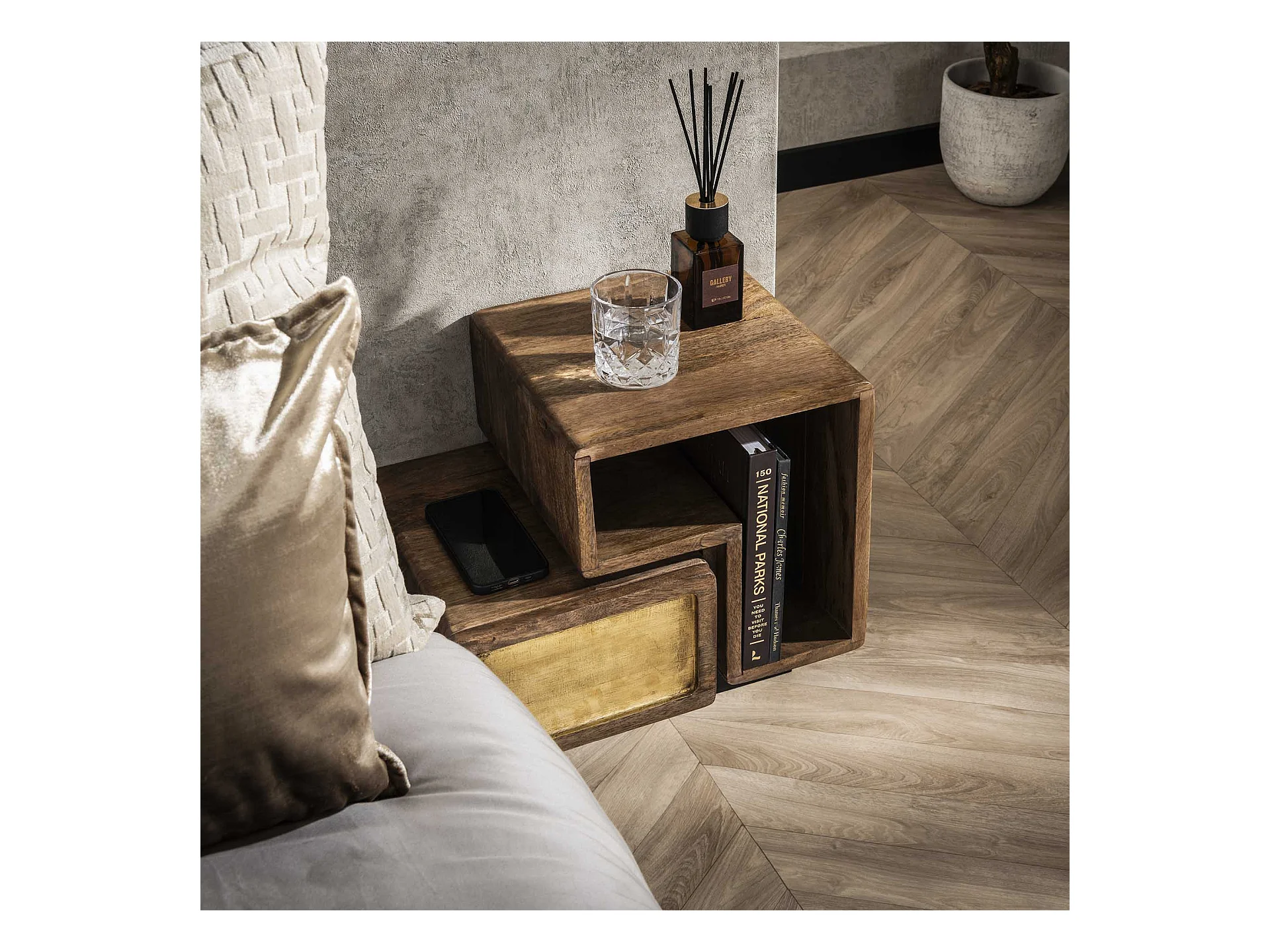 Tables de chevet en laiton - Manguier massif noir - Lot de 2