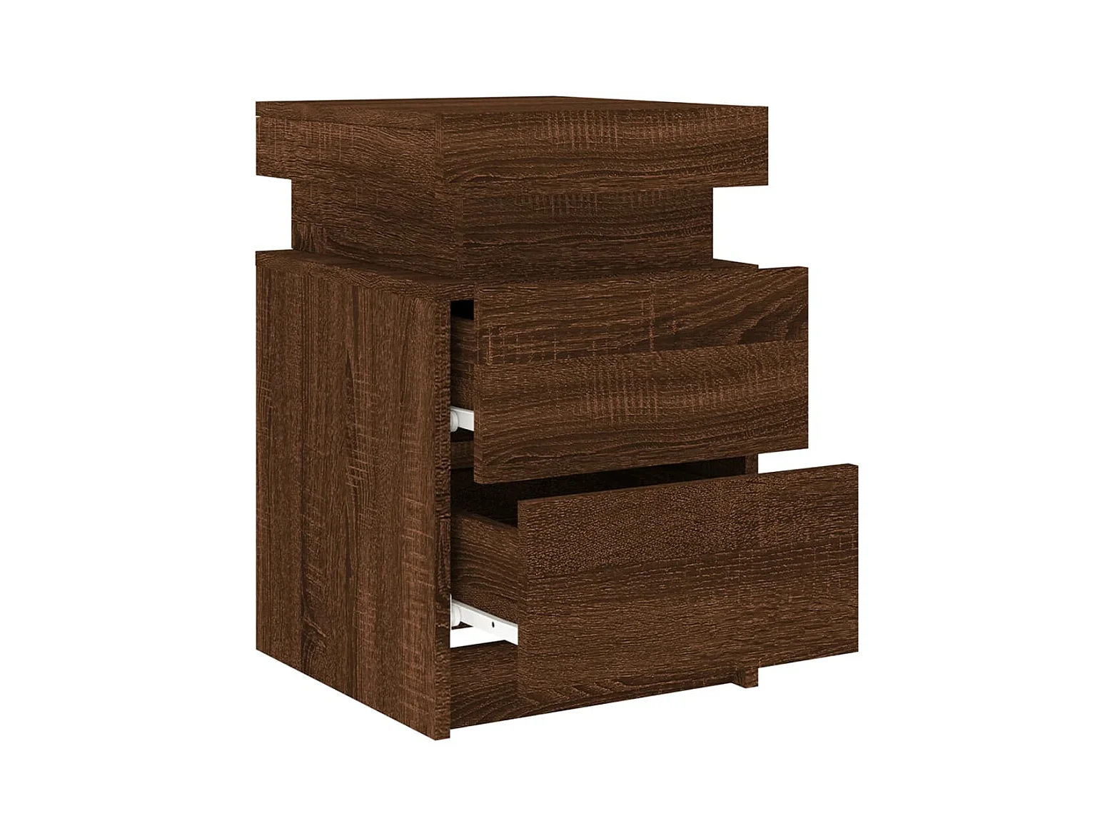 Armoire de chevet et lumières LED chêne marron bois ingénierie