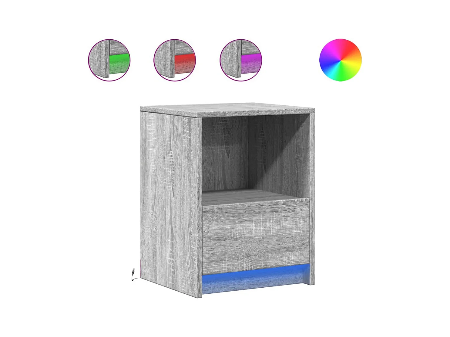 Table de chevet avec lumières LED sonoma gris 38x34x50 cm