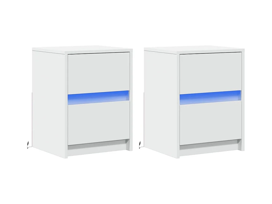 Tables de chevet avec lumières LED 2 pièces blanc 38x34x50 cm