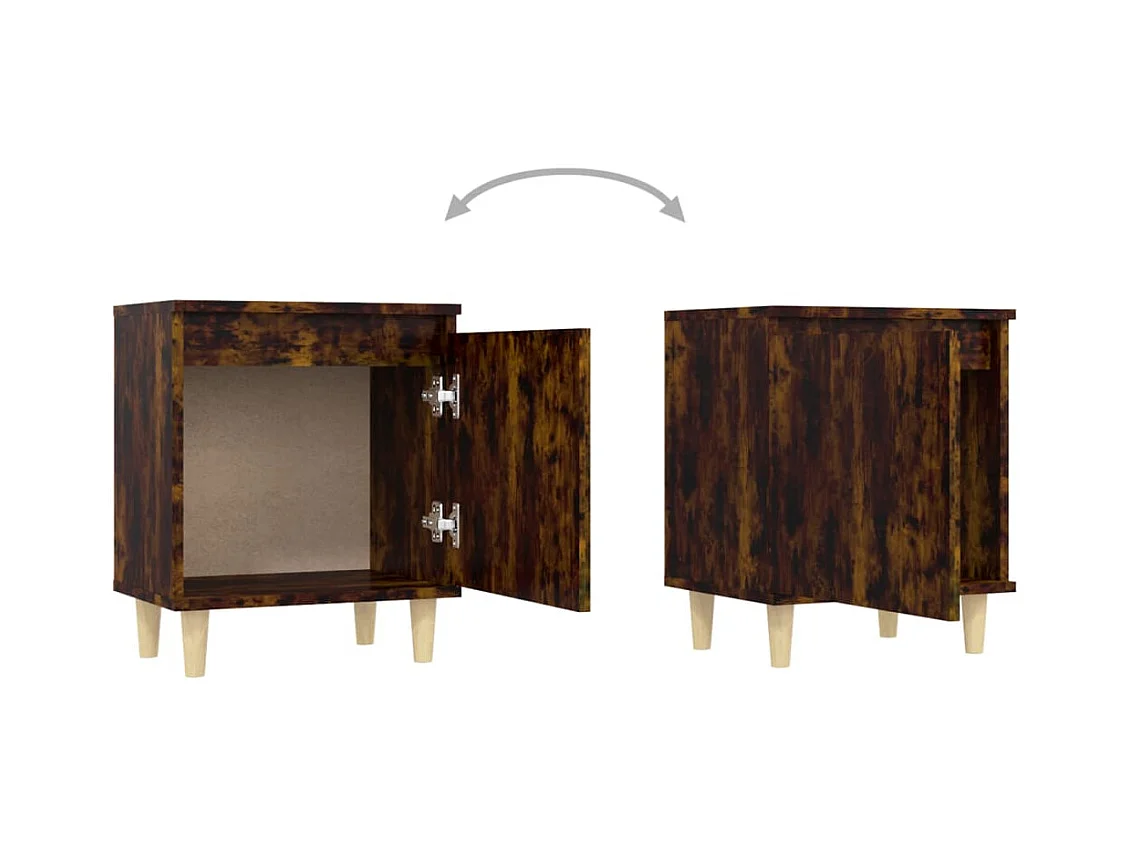 Tables de chevet et pieds en bois 2 pcs Chêne fumé 40x35x50 cm