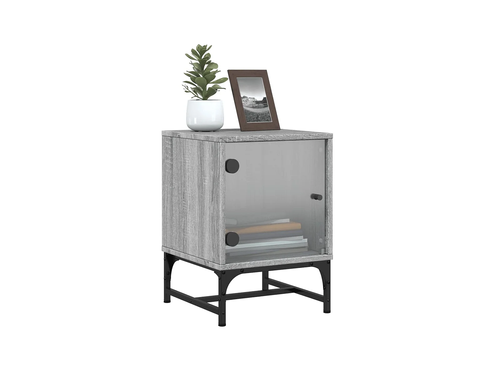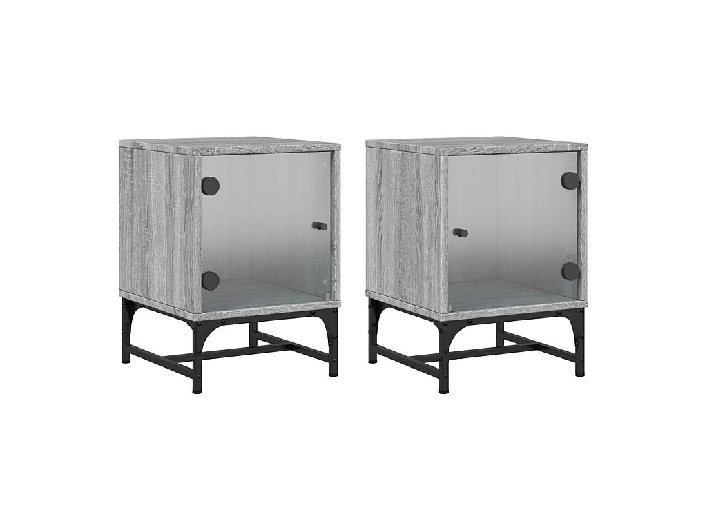 Lot de 2 Tables de chevet et portes vitrées sonoma gris 35x37x35cm GHR85658