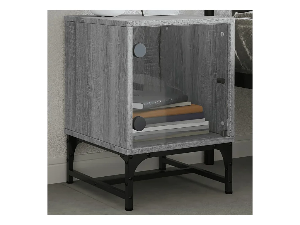 Lot de 2 Tables de chevet et portes vitrées sonoma gris 35x37x42cm GHR89539