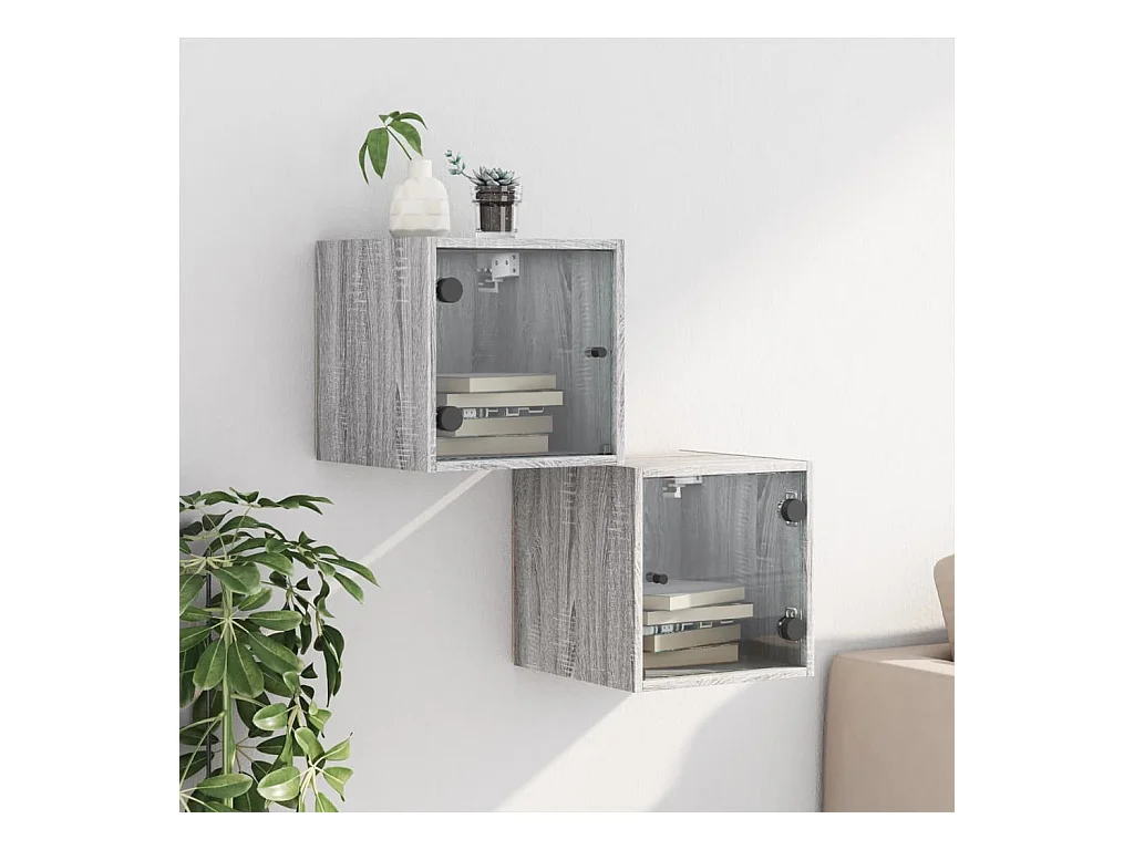 Lot de 2 Tables de chevet et portes vitrées sonoma gris 35x37x35cm GHR85658