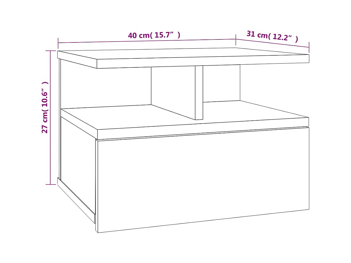 Table de chevet flottante Chêne fumé 40x31x27 cm