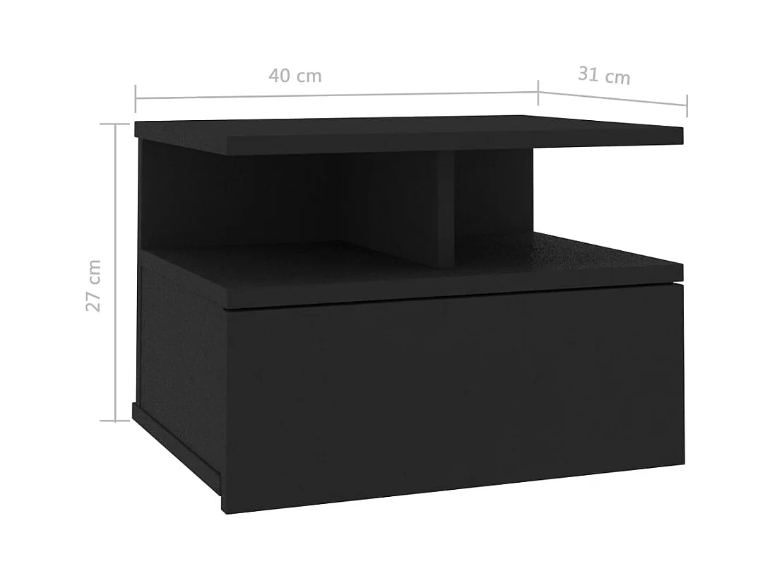 Tables de chevet flottantes 2 pièces Noir 40x31x27 cm Aggloméré