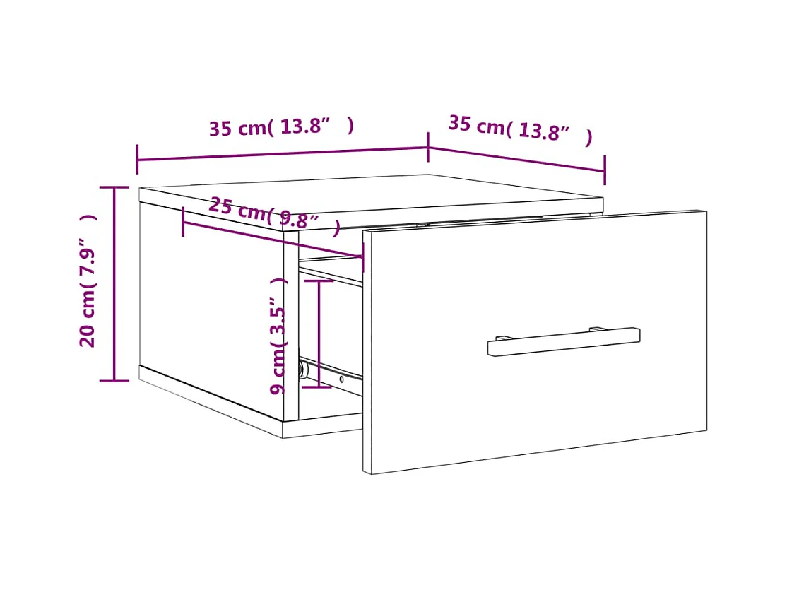 Table de chevet murale chêne sonoma 35x35x20 cm