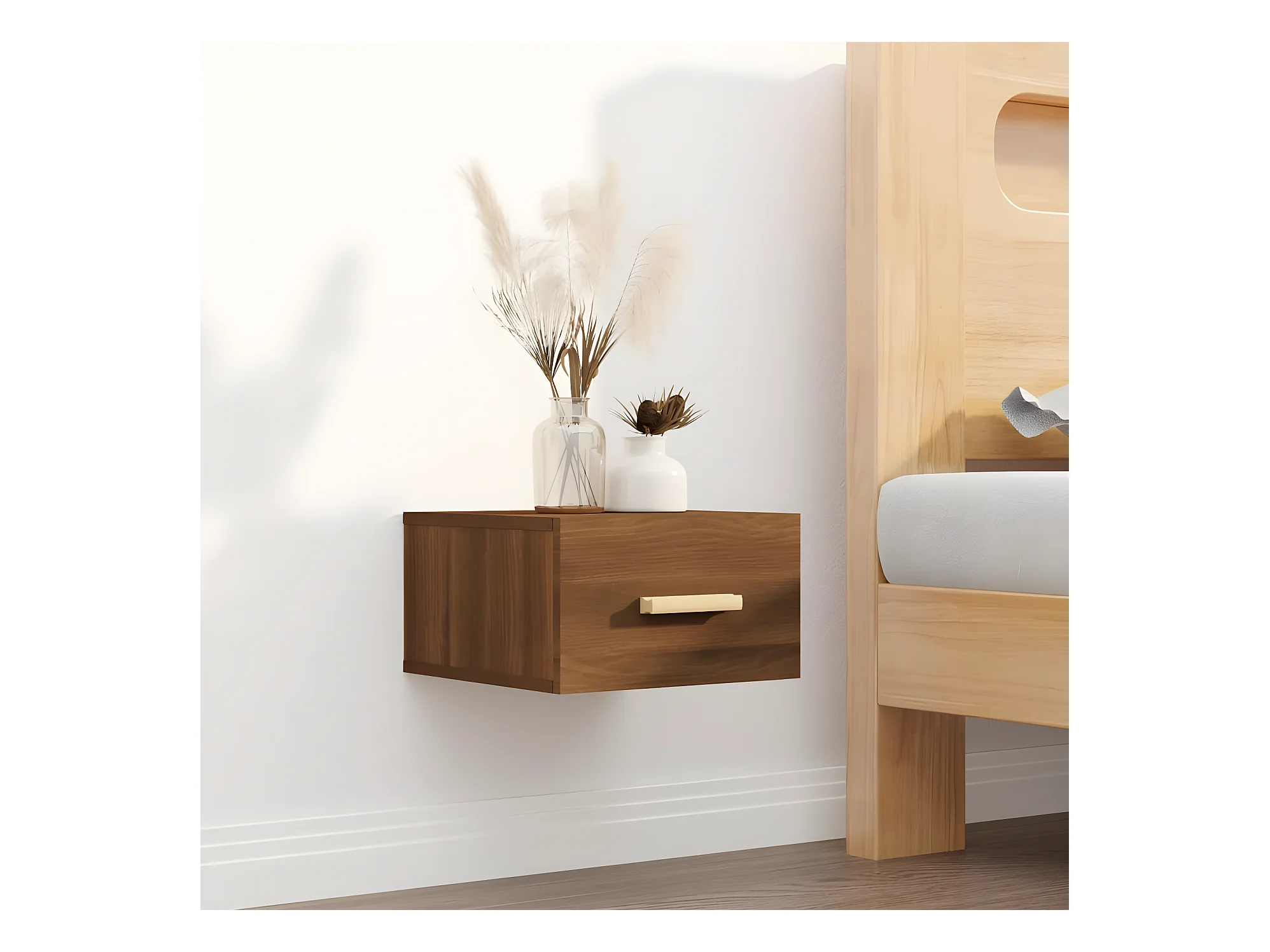 Table de chevet murale chêne marron 35x35x20 cm