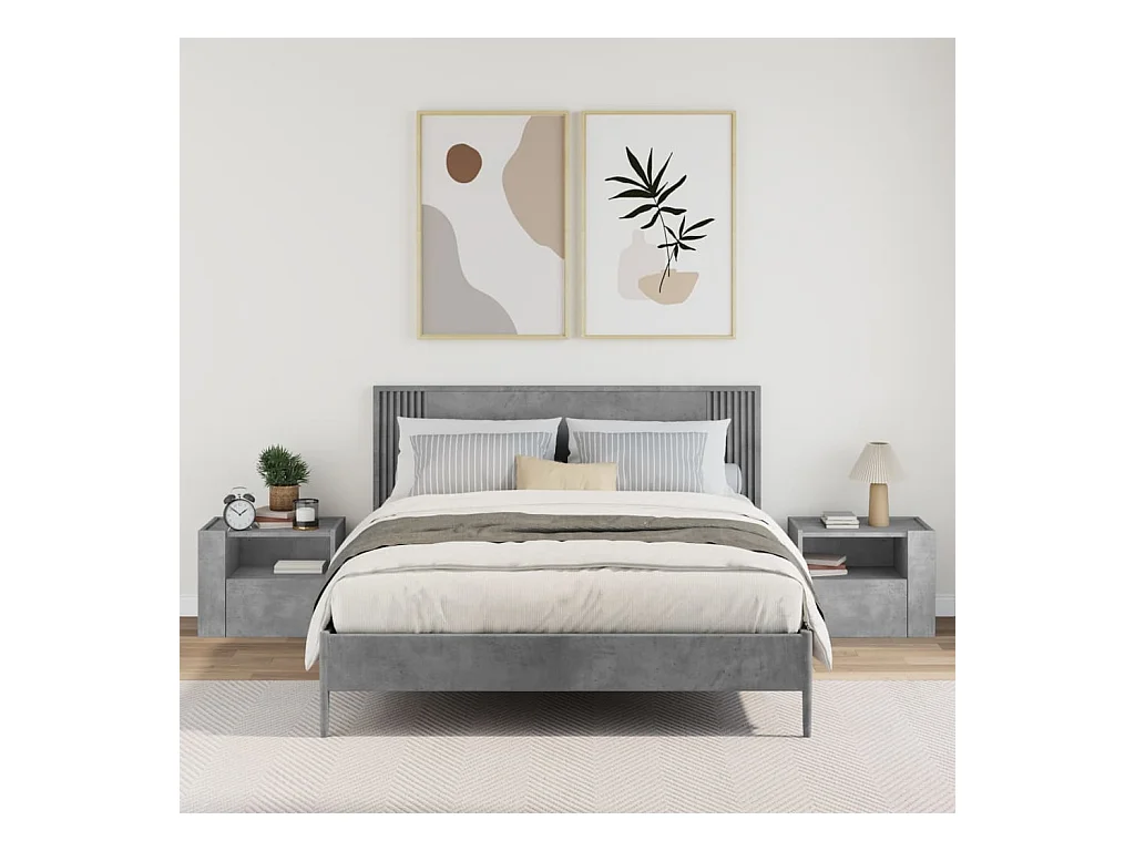 Tables de chevet murales 2 pièces gris béton 45x30x35 cm