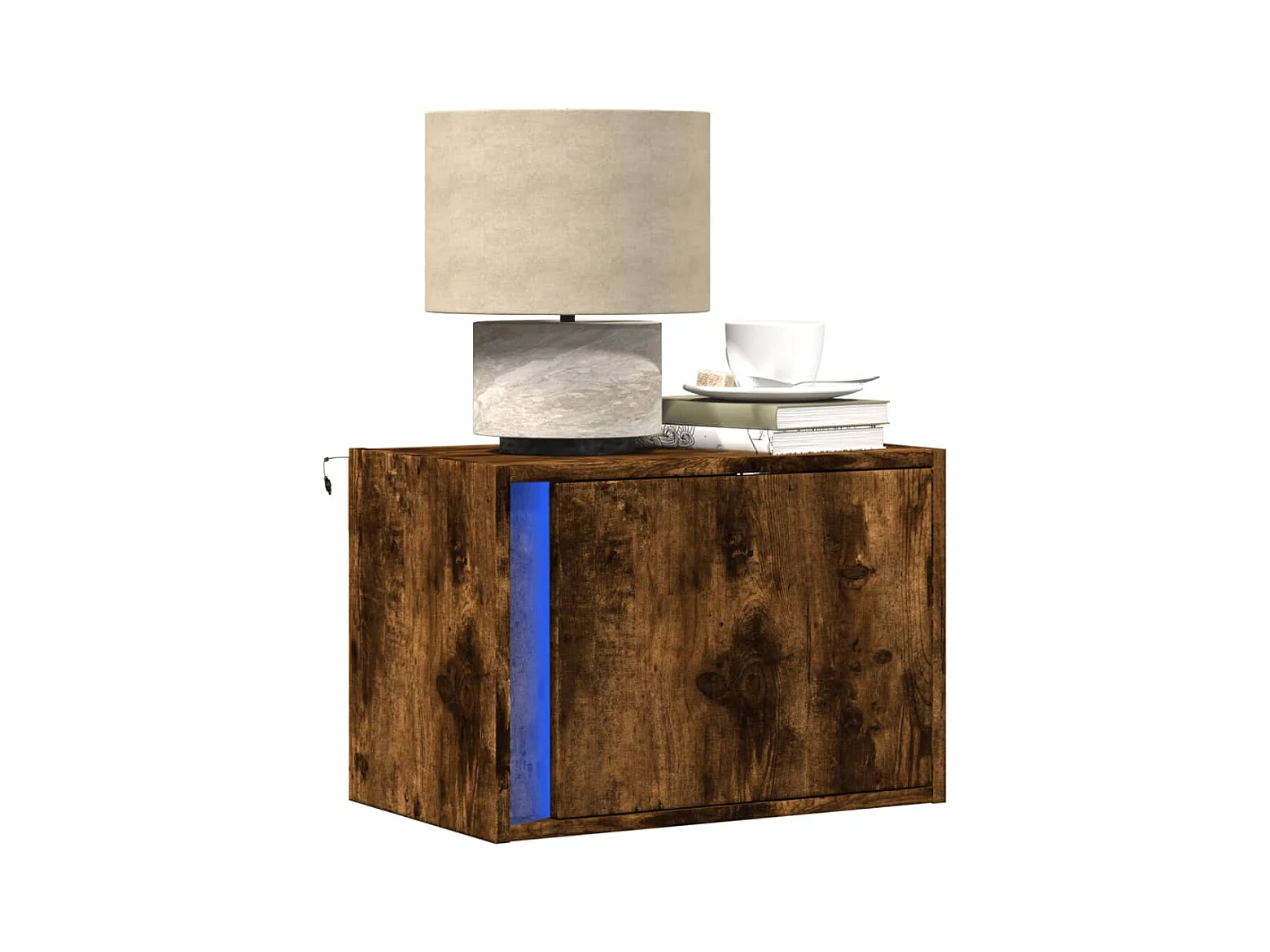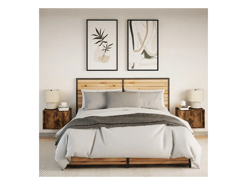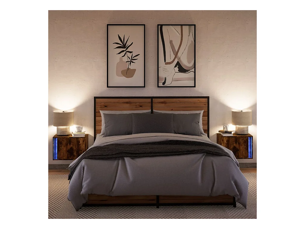 Tables de chevet murales avec lumières LED 2 pcs chêne fumé