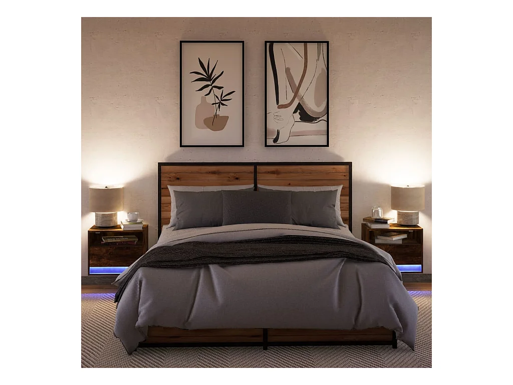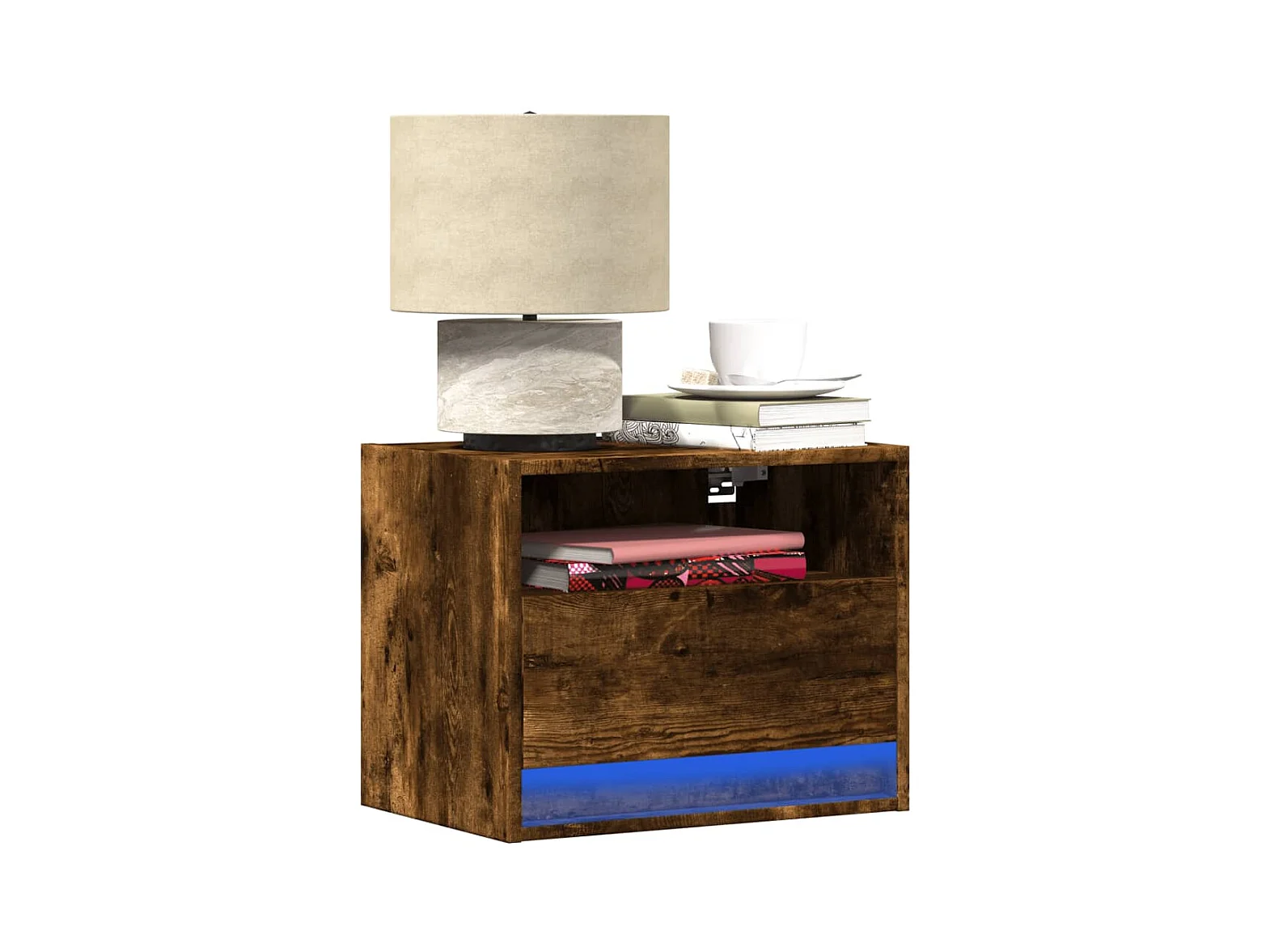 Tables de chevet murales avec lumières LED 2 pcs chêne fumé