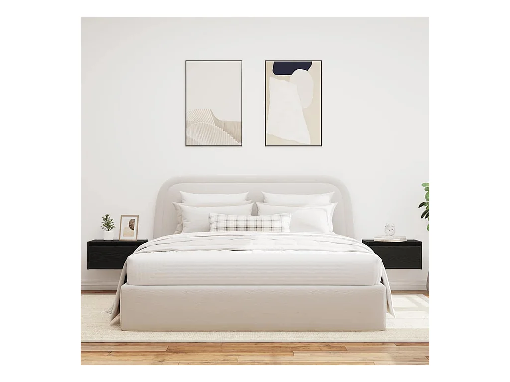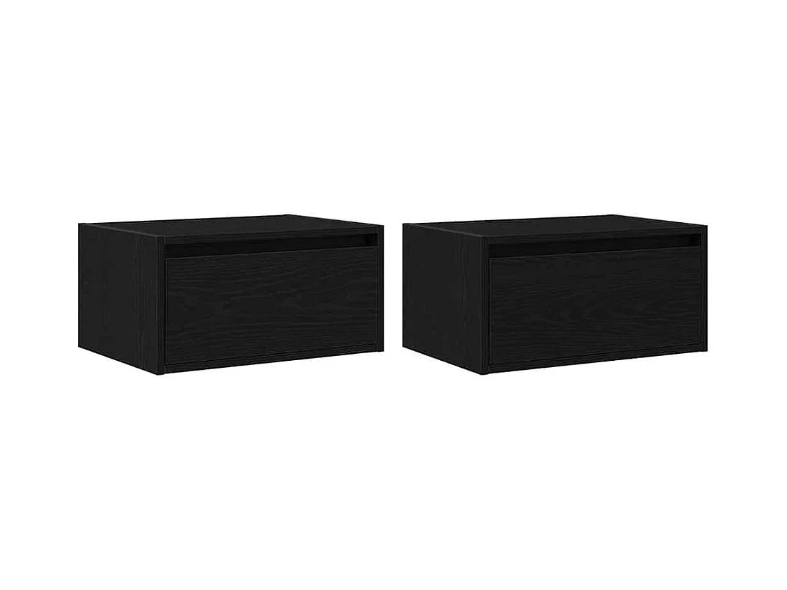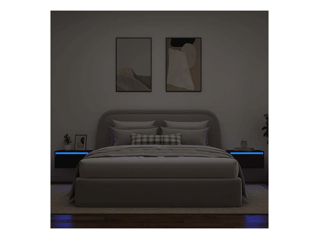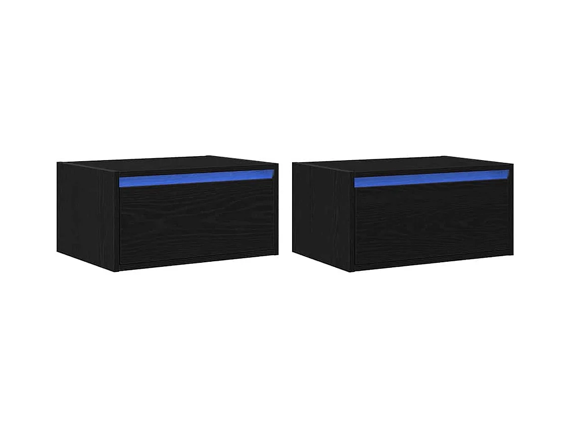 Tables de chevet murales avec lumières LED 2 pcs chêne noir