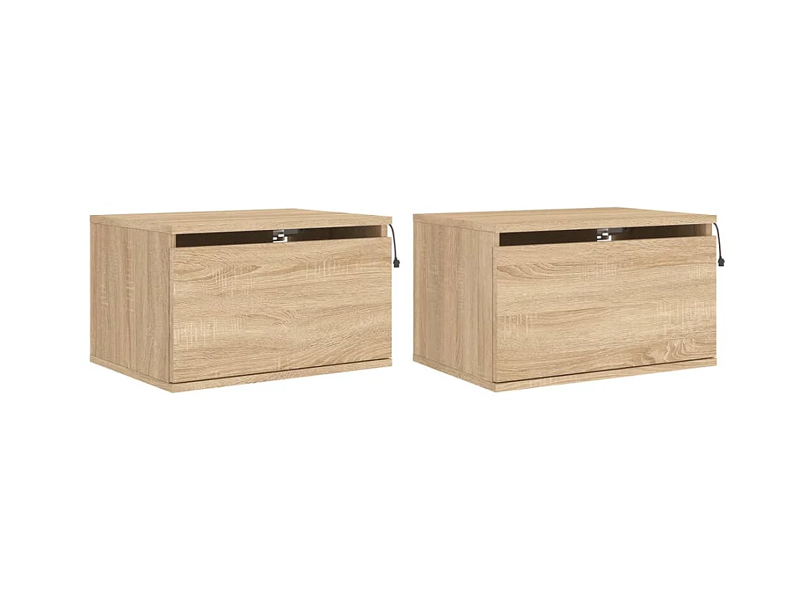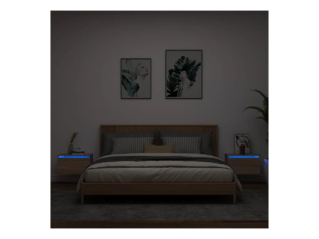 Tables de chevet murales avec lumières LED 2 pcs chêne sonoma