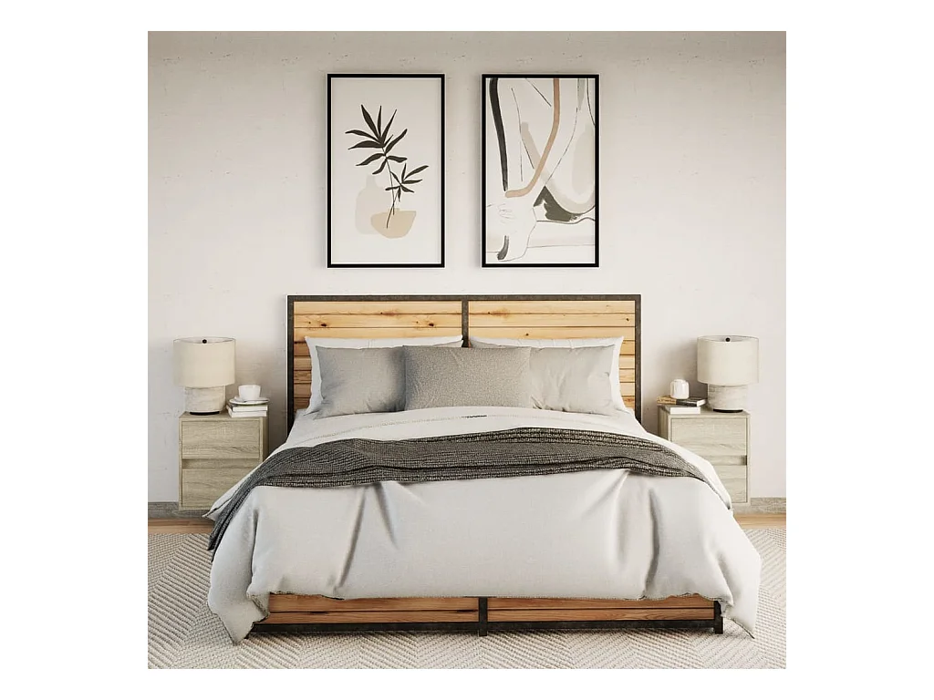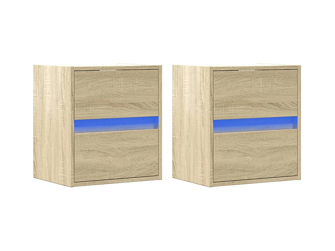 Tables de chevet murales avec lumières LED 2 pcs chêne sonoma