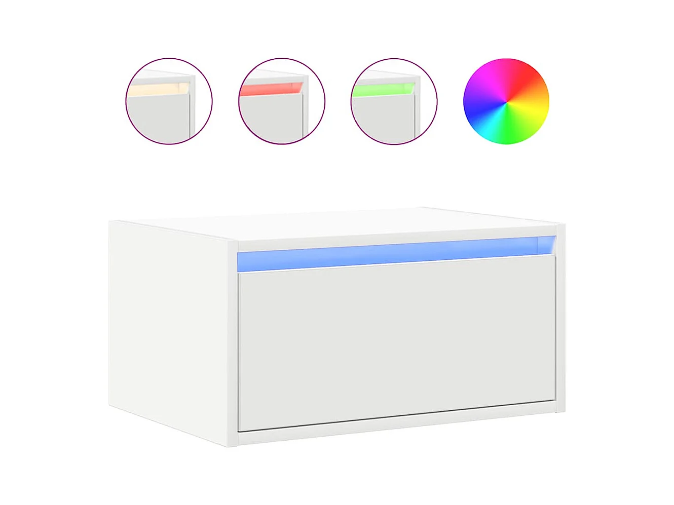 Tables de chevet murales avec lumières LED 2 pièces blanc