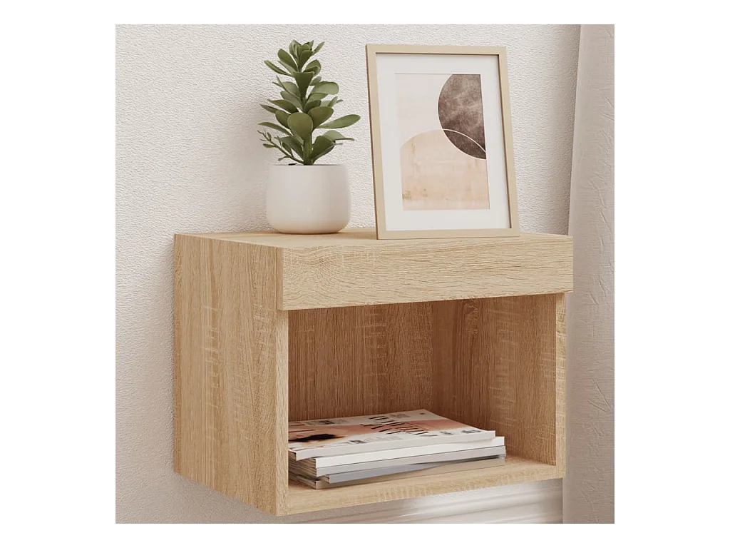 Tables de chevet murales avec lumières LED 2 pièces chêne sonoma