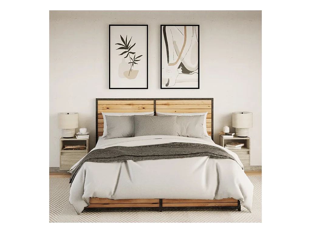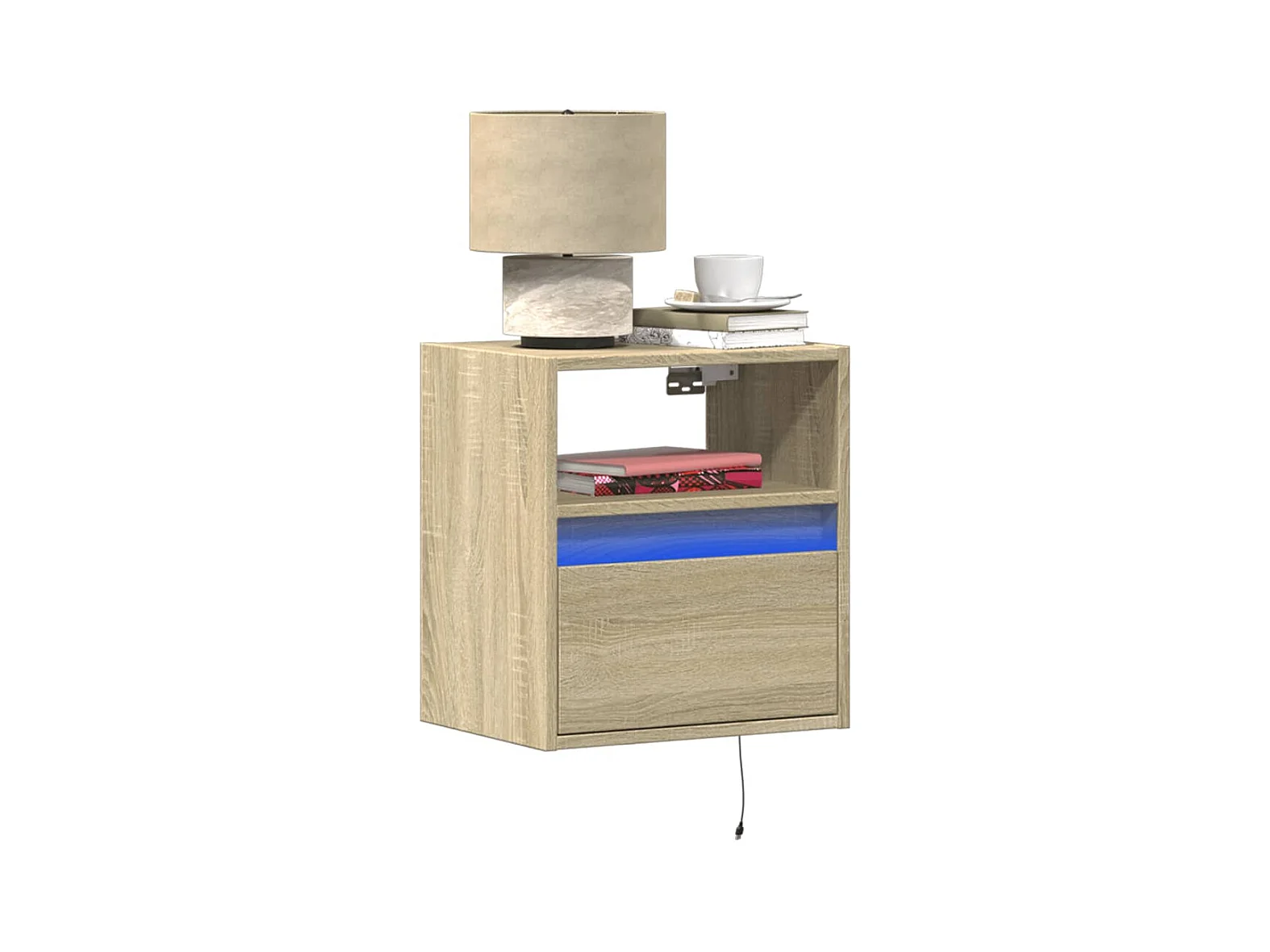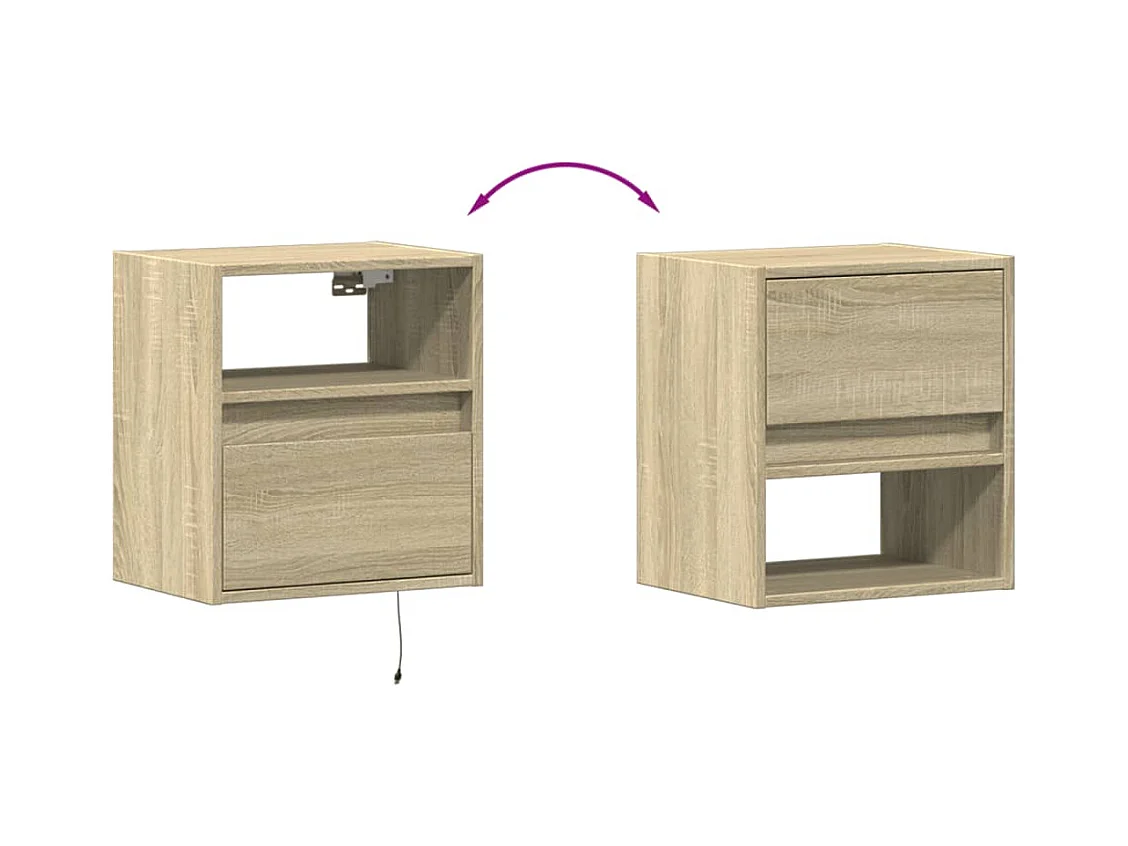 Tables de chevet murales avec lumières LED 2 pièces chêne sonoma