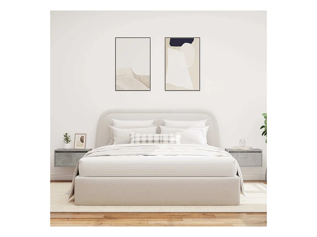 Tables de chevet murales avec lumières LED 2 pièces gris béton