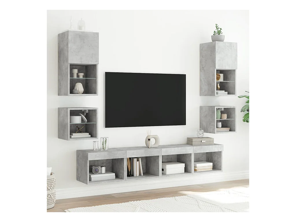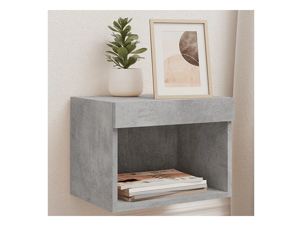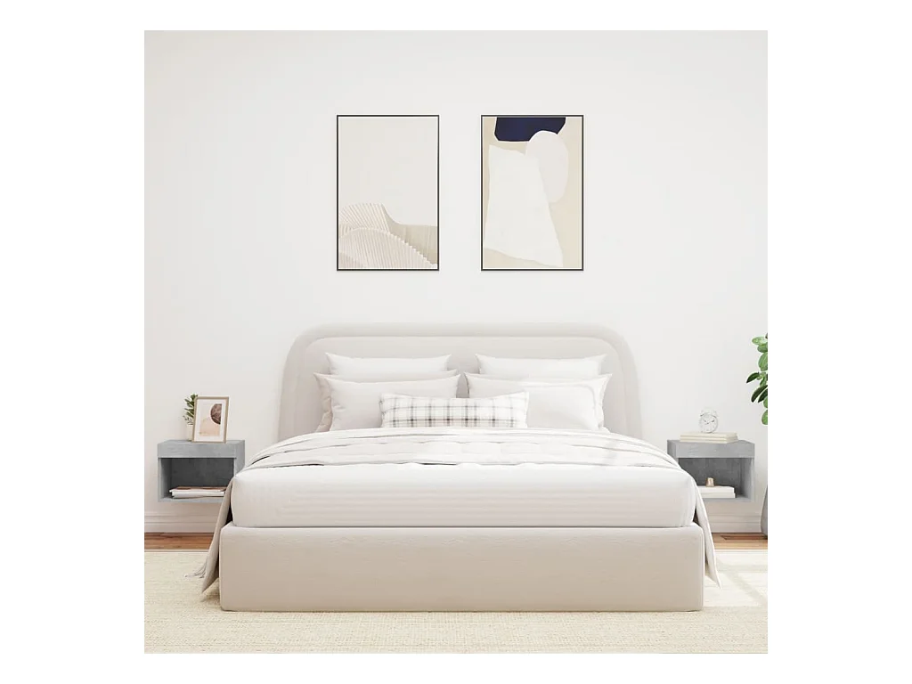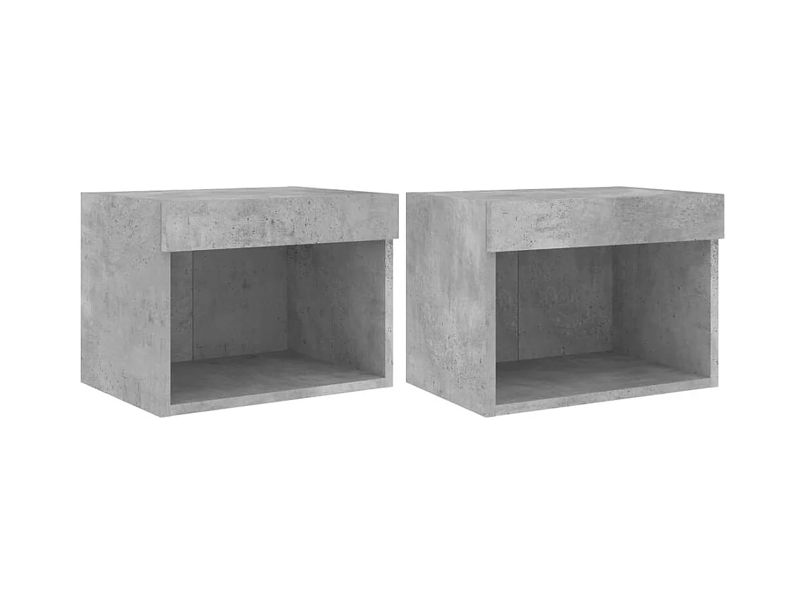 Tables de chevet murales avec lumières LED 2 pièces gris béton