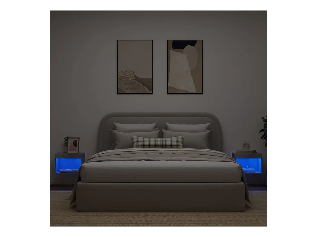 Tables de chevet murales avec lumières LED 2 pièces sonoma gris