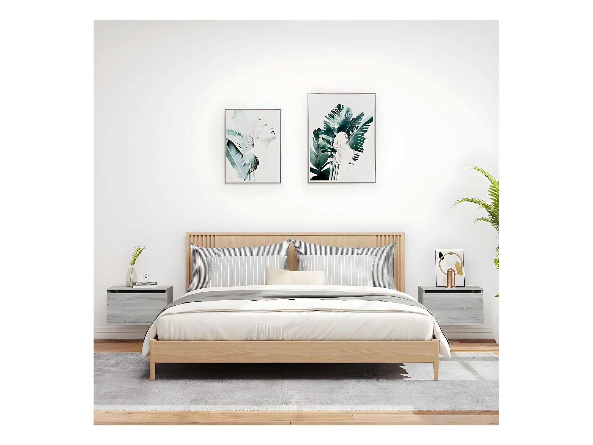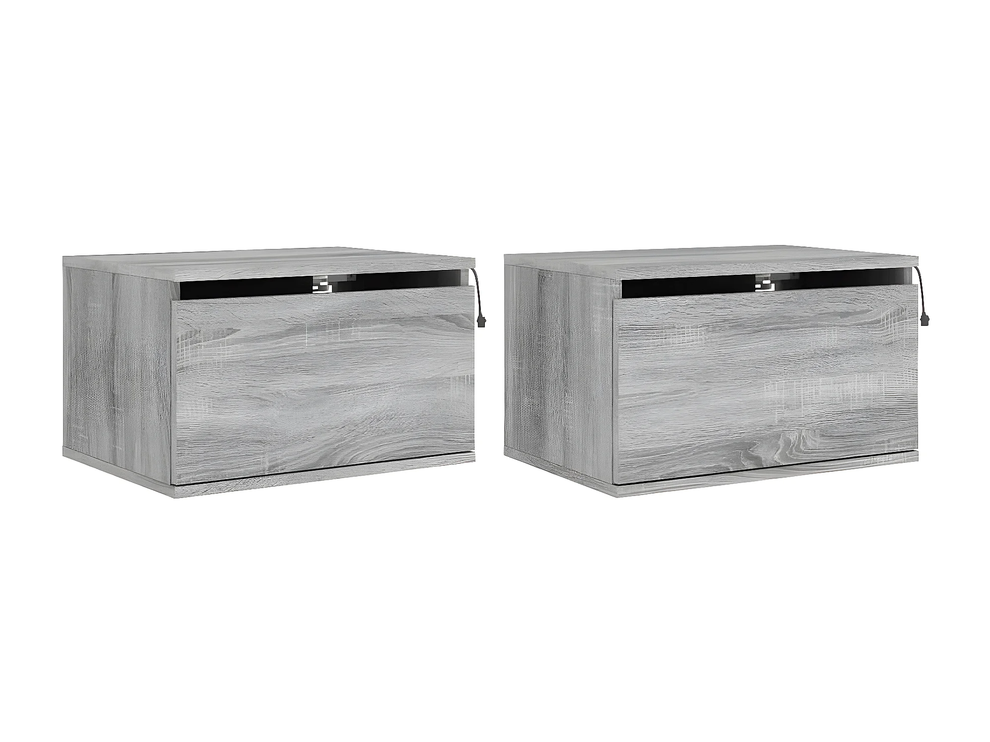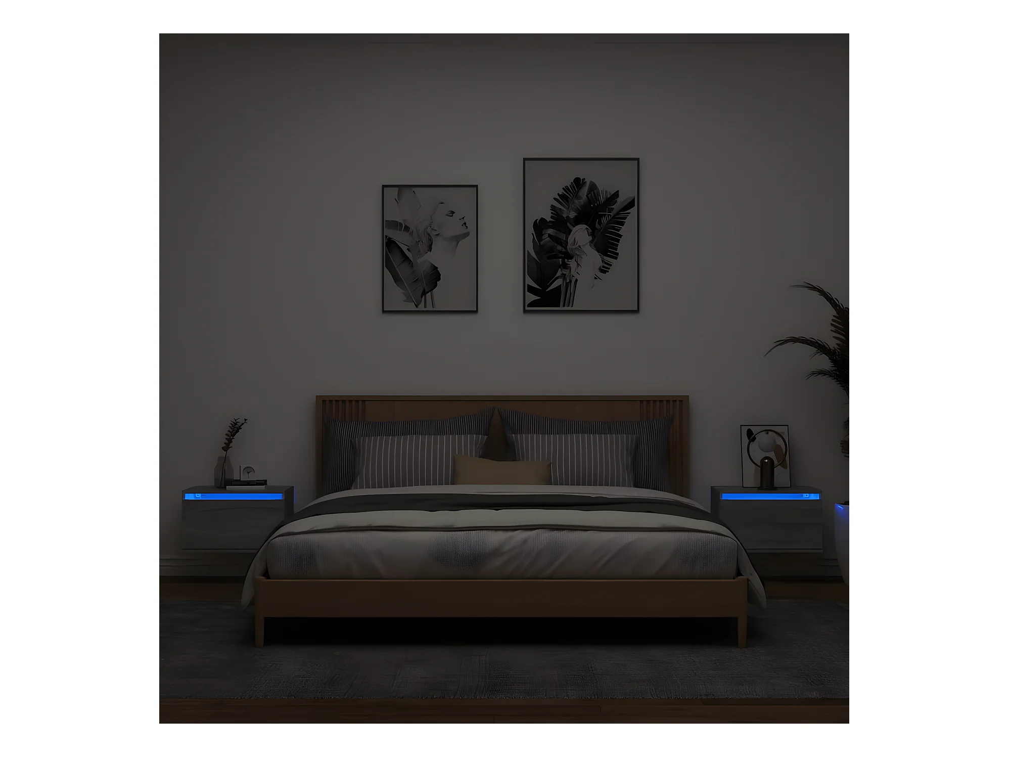 Tables de chevet murales avec lumières LED 2 pièces sonoma gris