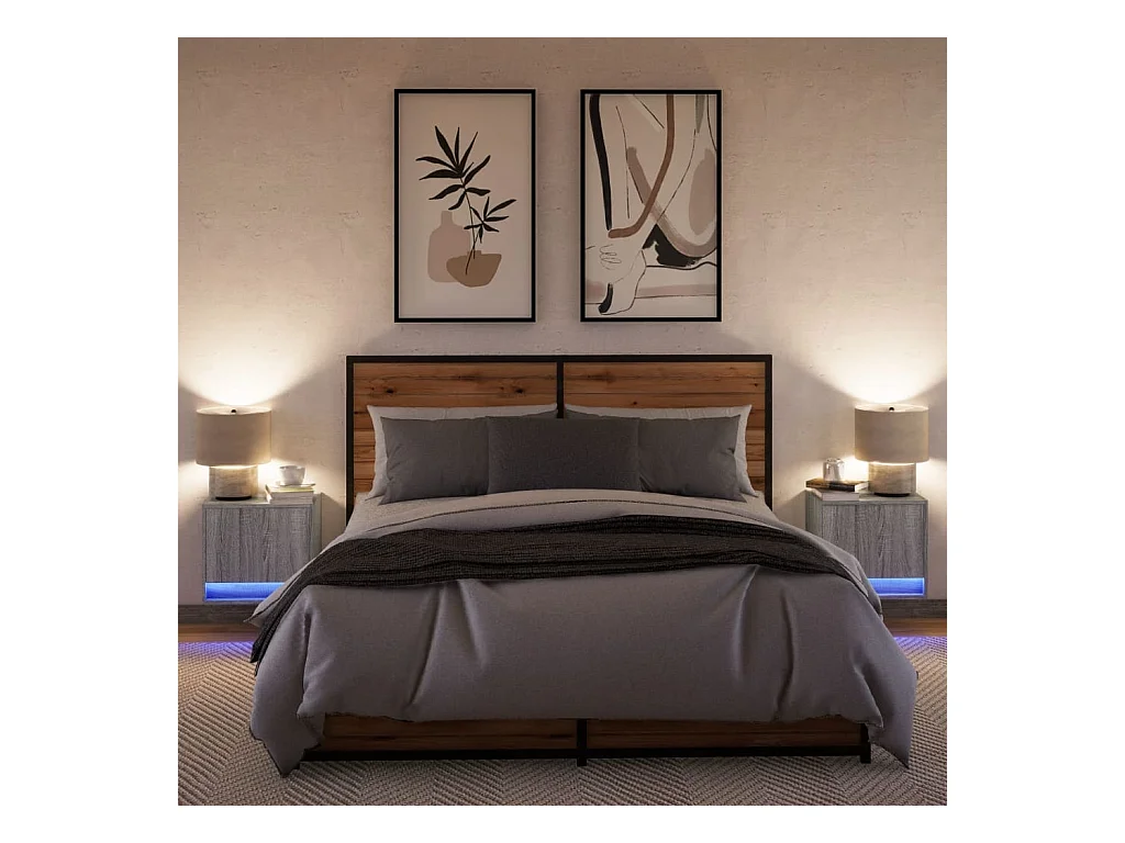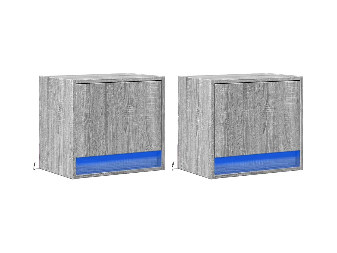 Tables de chevet murales avec lumières LED 2 pièces sonoma gris