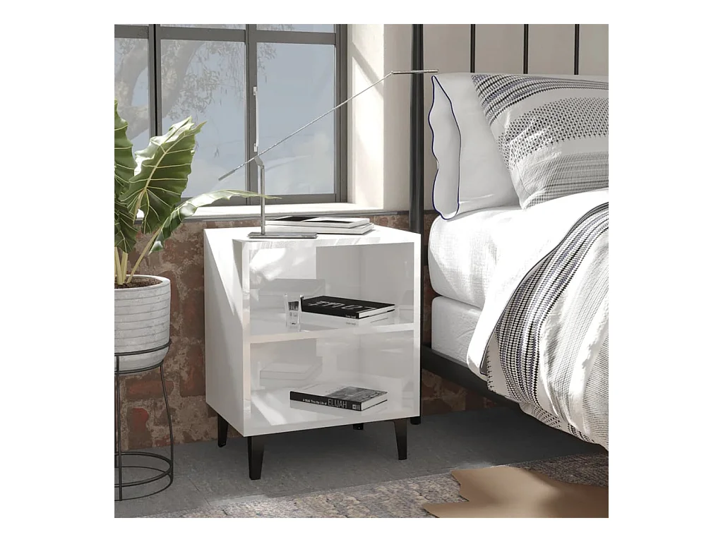 Tables de chevet pieds en métal 2 pcs blanc brillant 40x30x50cm
