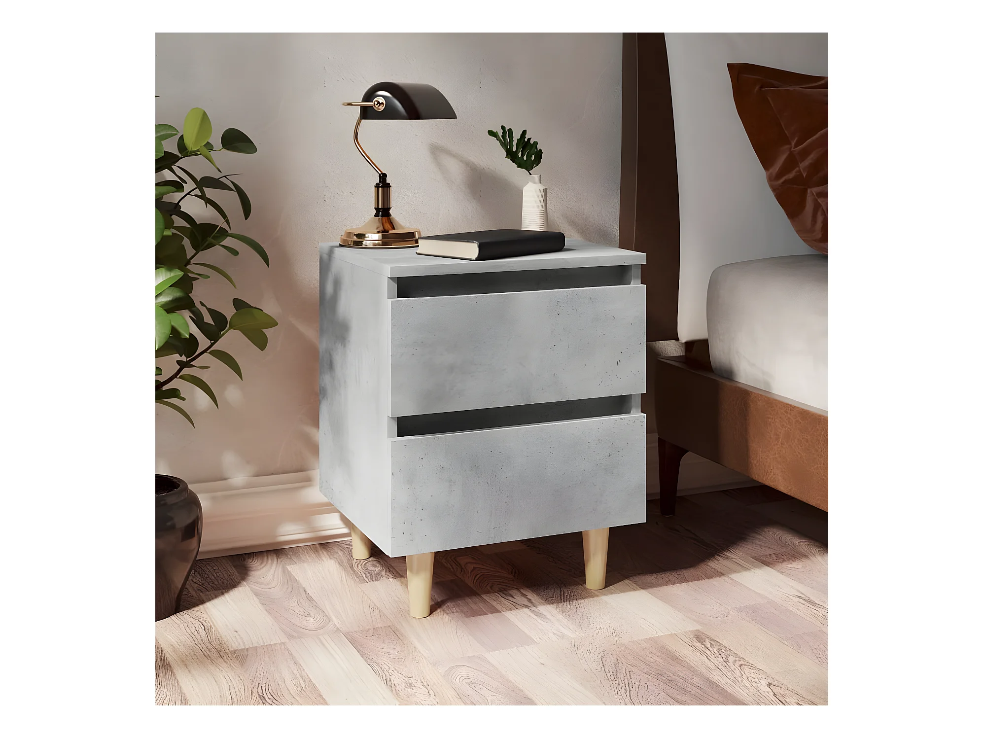 Tables de chevet pieds en pin 2 pièces Gris béton 40x35x50 cm