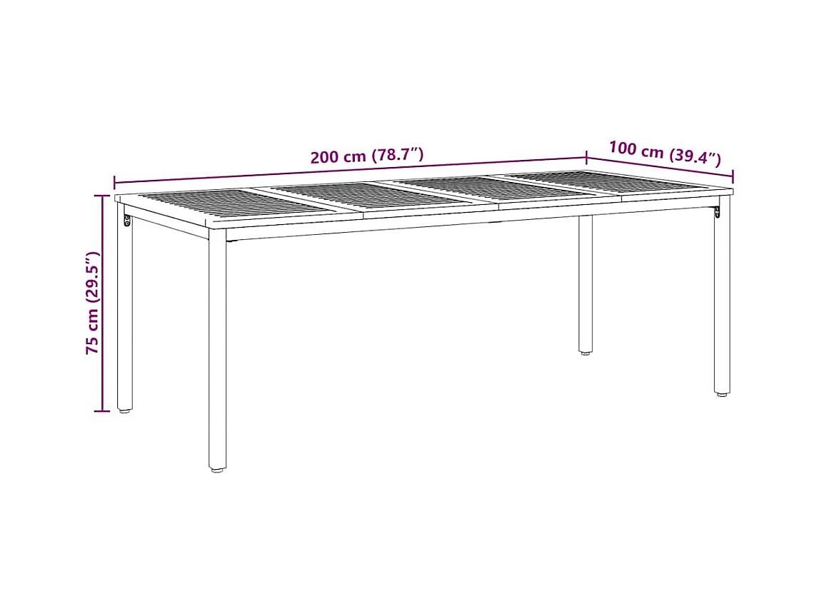Tables de jardin Naturel et noir 200 x 90 x 75 cm