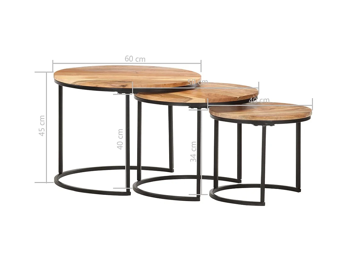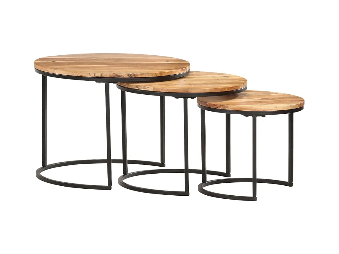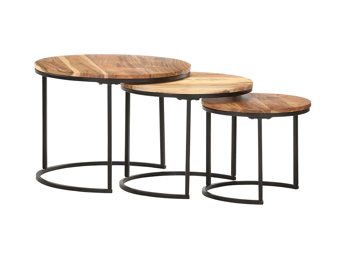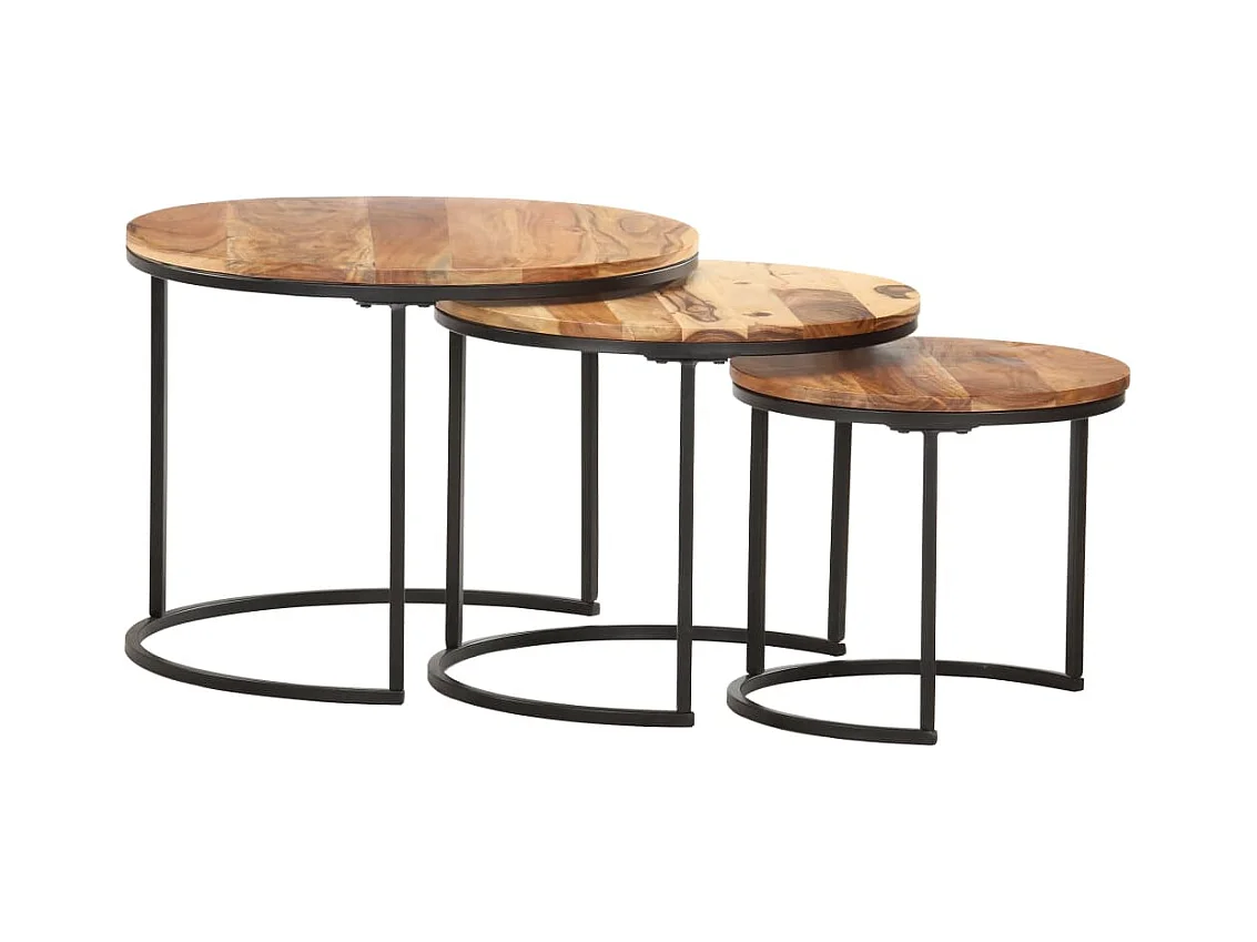 Ensemble de tables gigognes 3 pcs bois d'acajou massif