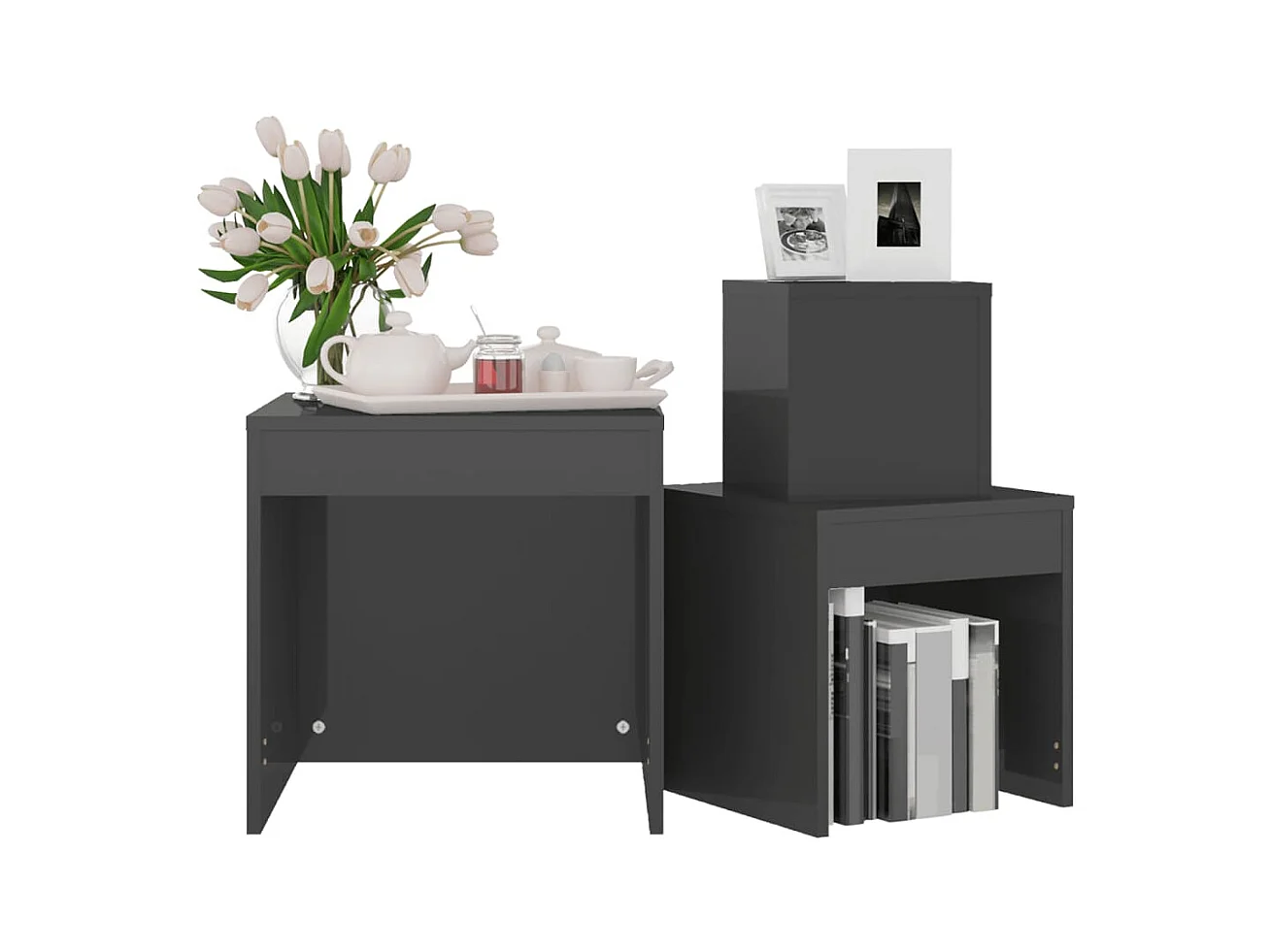 Tables gigognes 3 pcs Gris brillant Aggloméré GHR64331