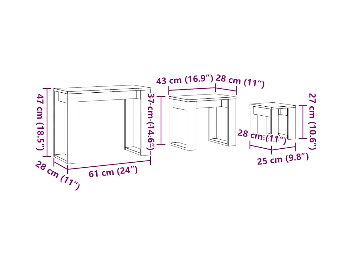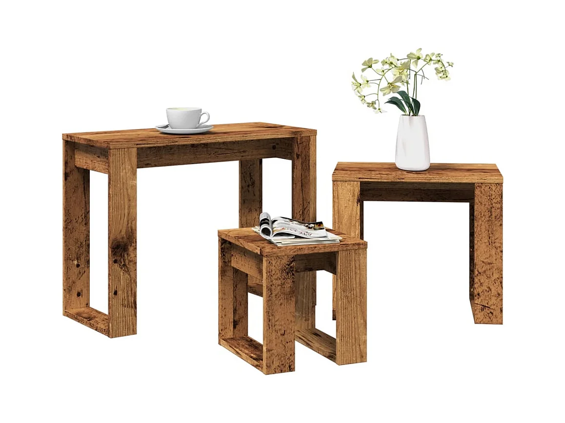 Tables gigognes 3 pcs vieux bois bois d'ingénierie