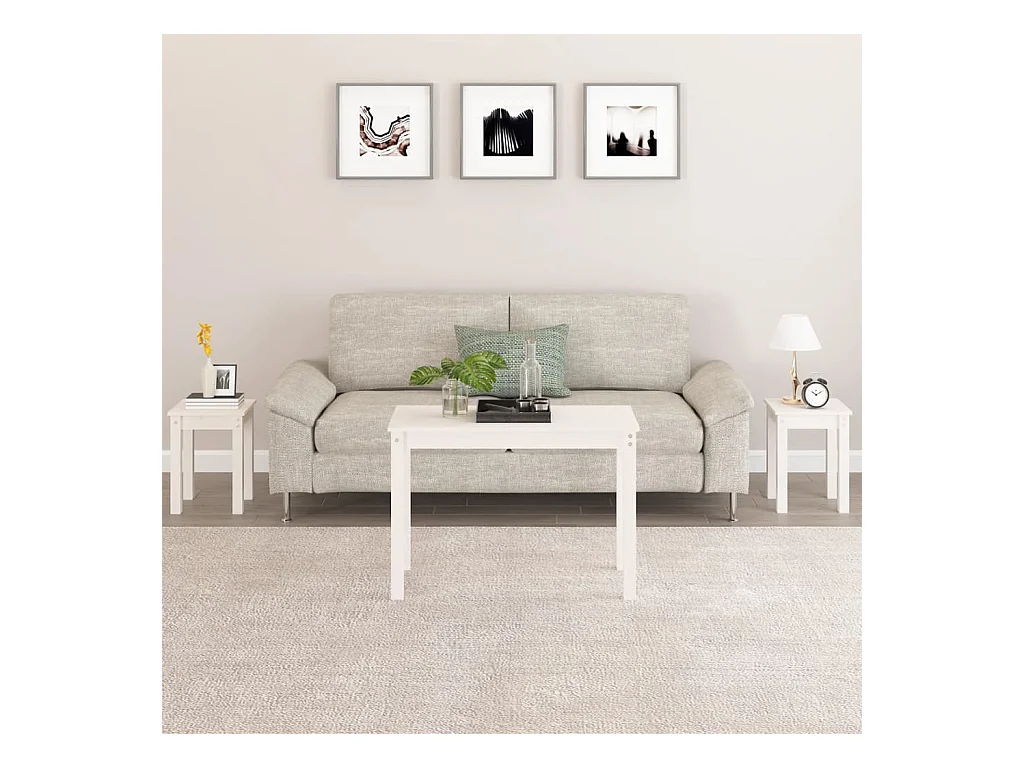 Tables gigognes 3 pièces Blanc Bois de pin massif