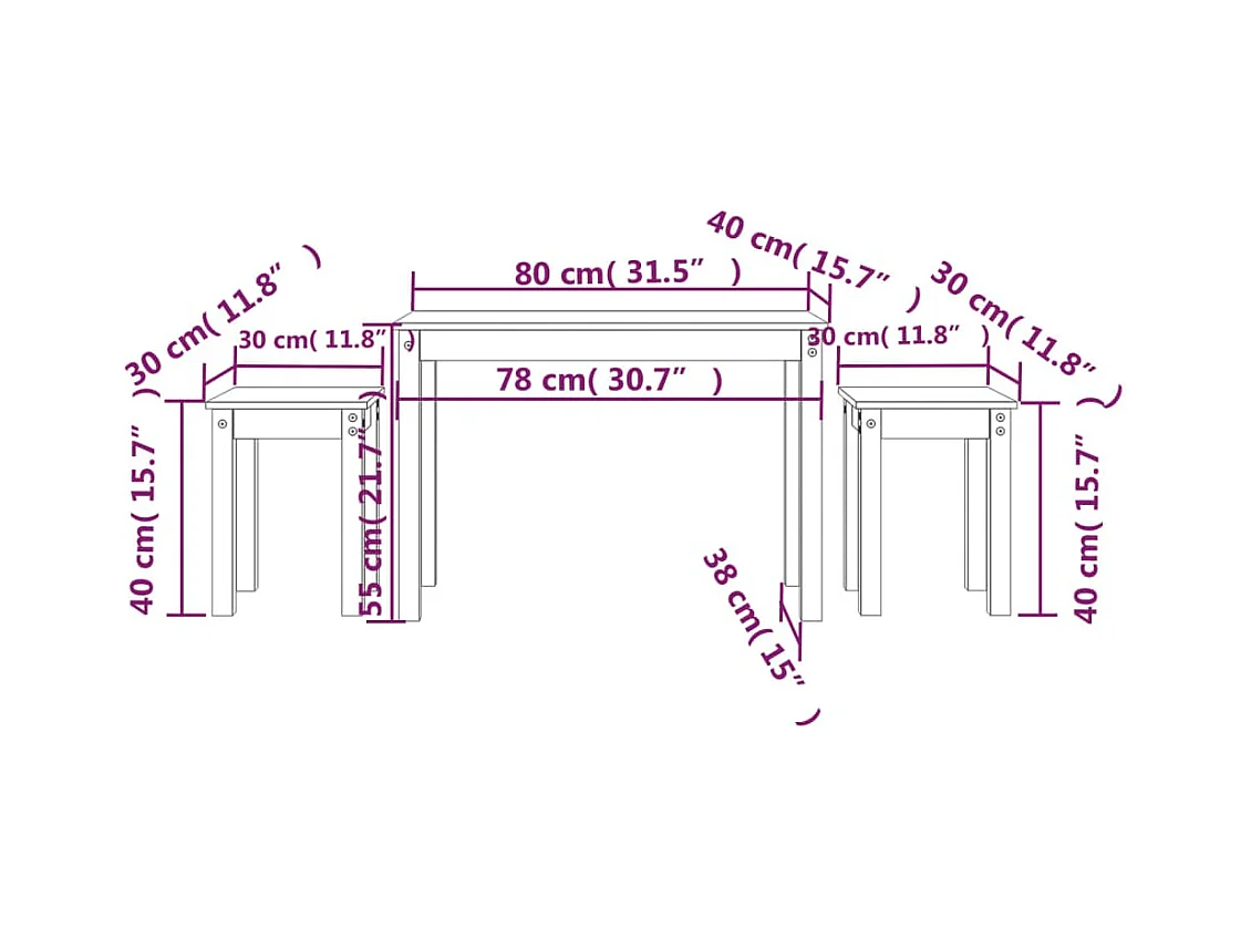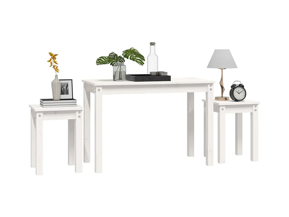 Tables gigognes 3 pcs Blanc Bois de pin massif