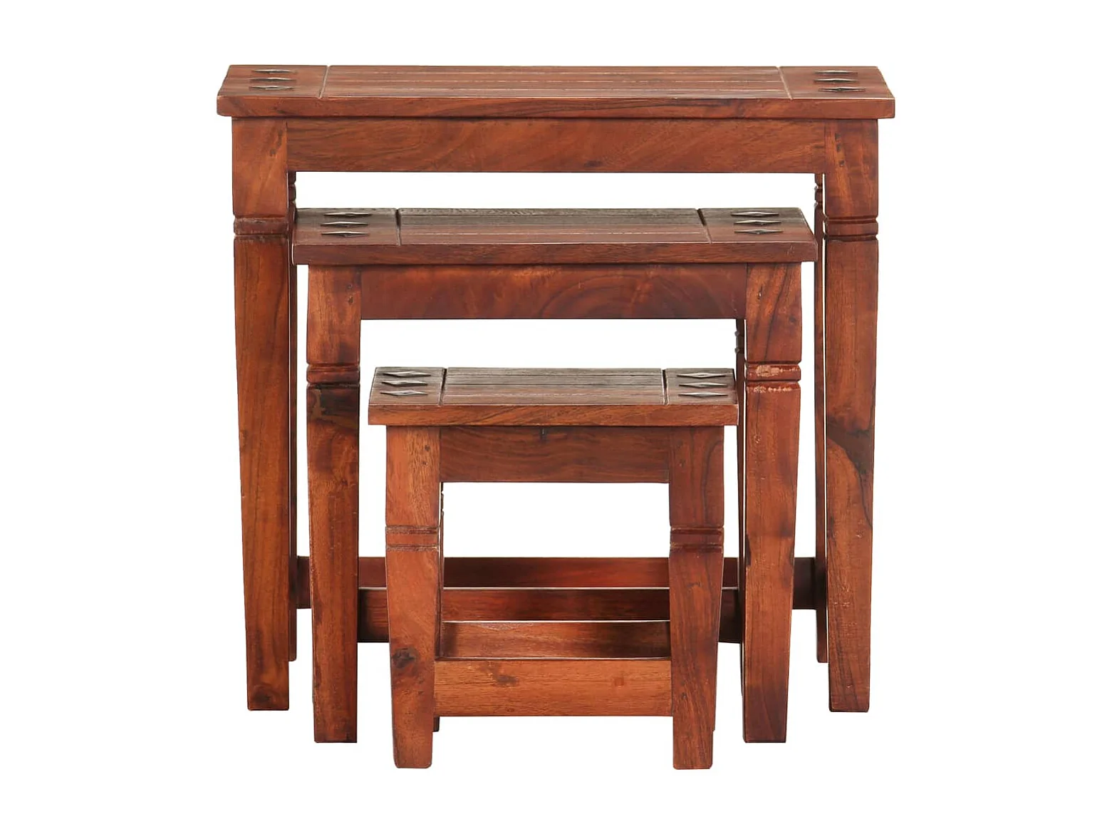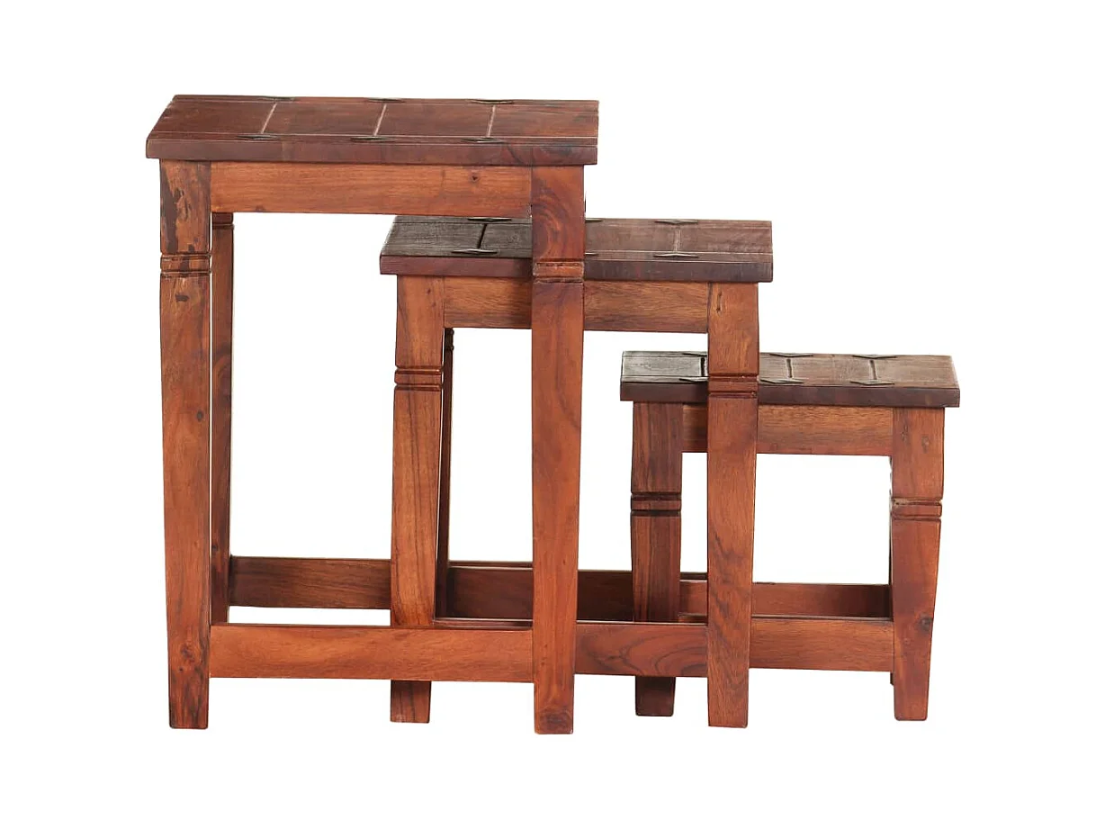 Table Gigogne 3 pièces Bois d'acacia solide et un métal