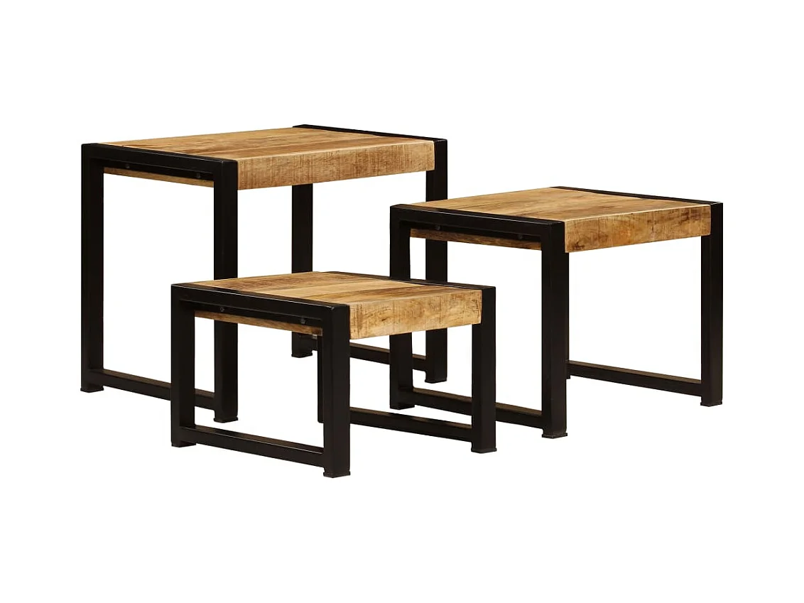 Tables gigognes 3 pcs avec bord vivant bois de manguier massif FR551494