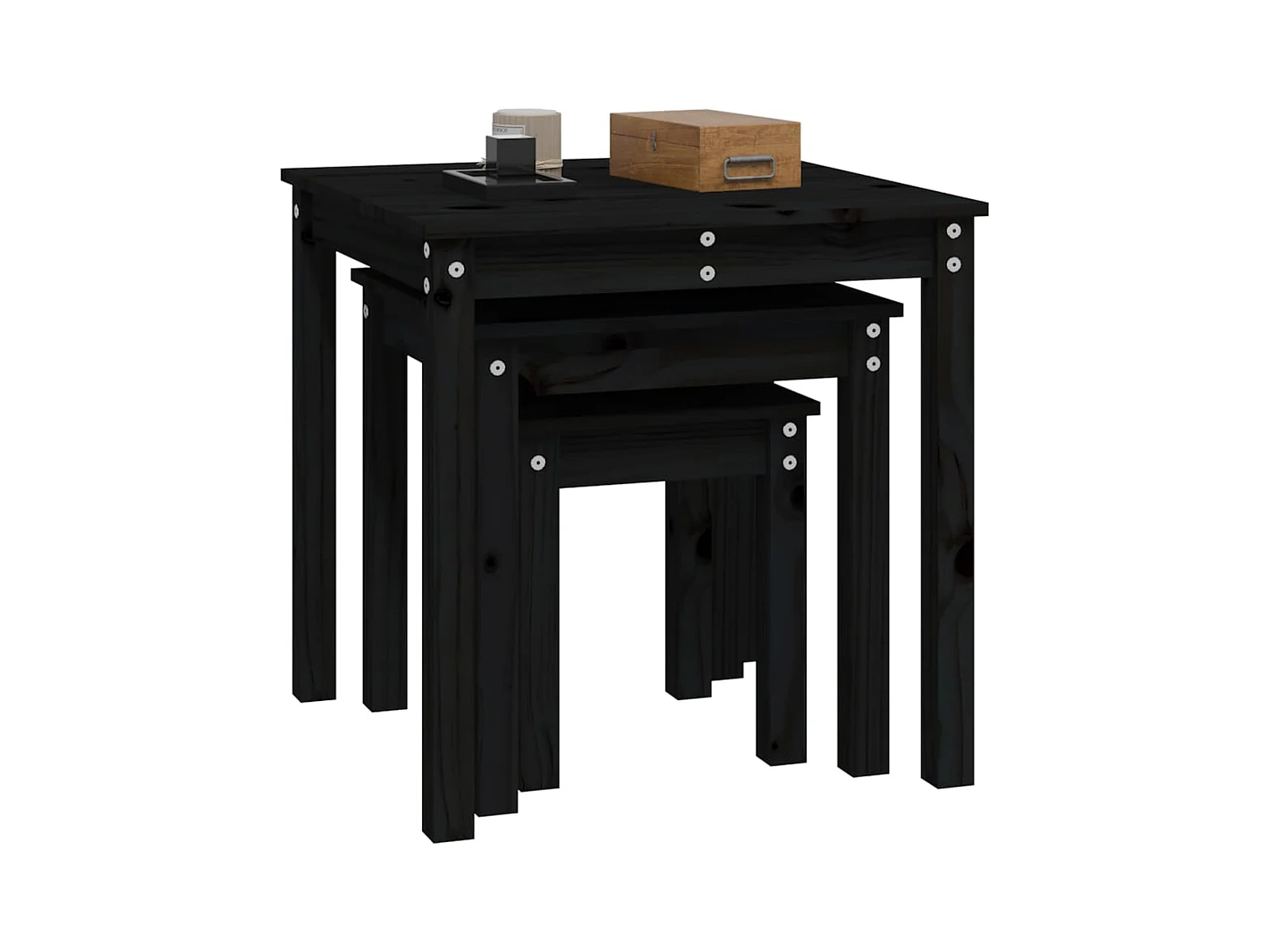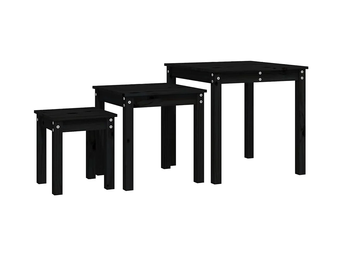 Tables gigognes 3 pcs Noir Bois de pin massif