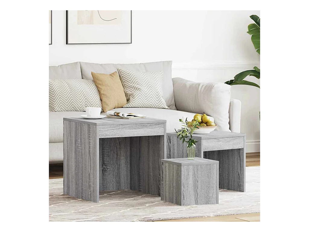 Tables d’appoint gigognes 3 pièces sonoma gris bois d'ingénierie