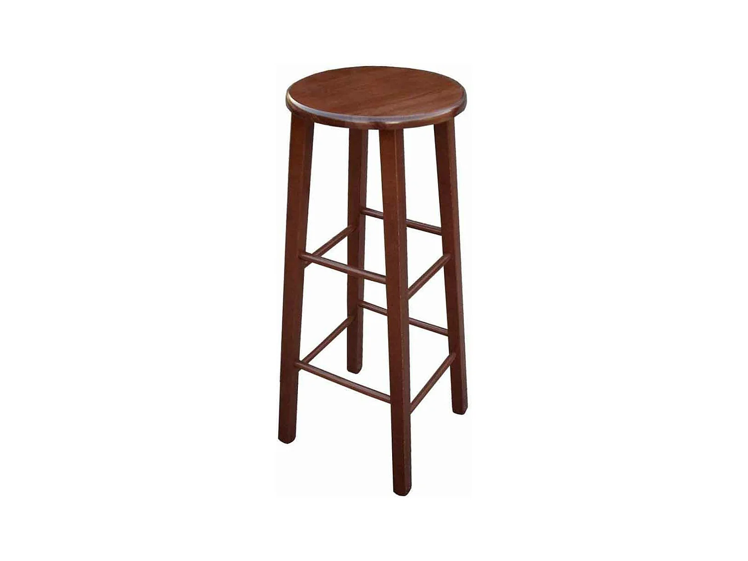 Tabouret avec assise ronde h 80 cm couleur noyer foncé pied droit