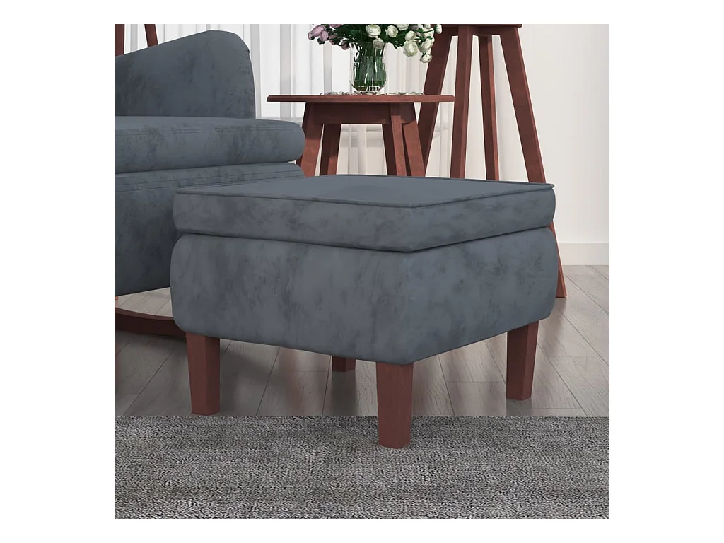 Tabouret bas avec pieds en bois Gris foncé Velours FR22903